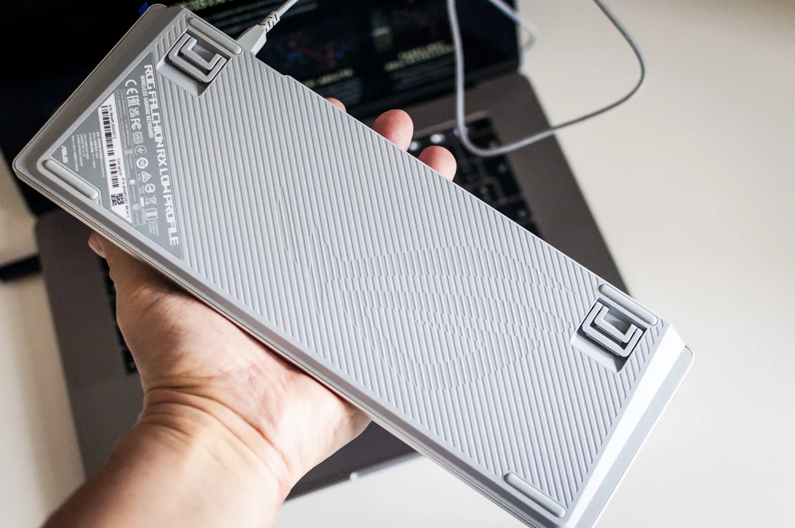 Come abbiamo accennato, la Asus ROG Falchion RX Low Profile è compatibile sia con PC che con Mac. Manovrando un interruttore vicino al connettore di ricarica si gestisce il layout dei tasti secondo una modalità l’altra. Nei fatti si inverte l’uso dei tasti Command/Windows e Option/Alt.