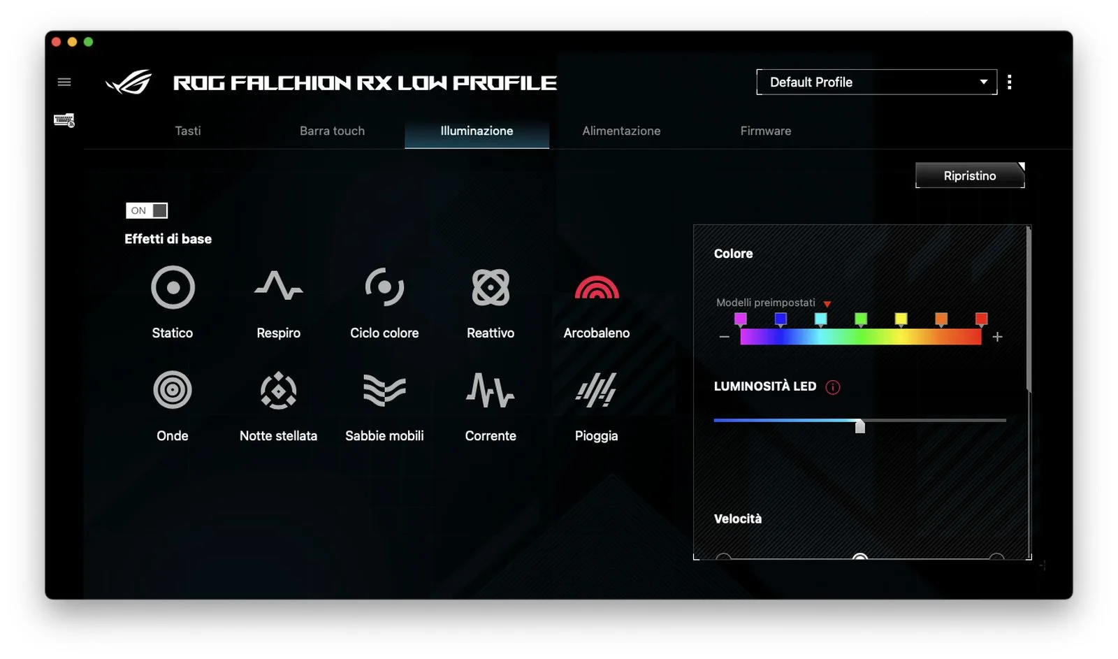 Come molti altri modelli in realtà la tastiera funzione bene anche senza i driver installati, sia su Windows che su masOS, grazie alle combo con il tasto FN (Fn + 1 / 2 / 3 / 4 / 5 / 6), ma con i driver Armoury Crate Gear, che si scaricano dal sito ufficiale, tutto diventa più semplice e personalizzabile.