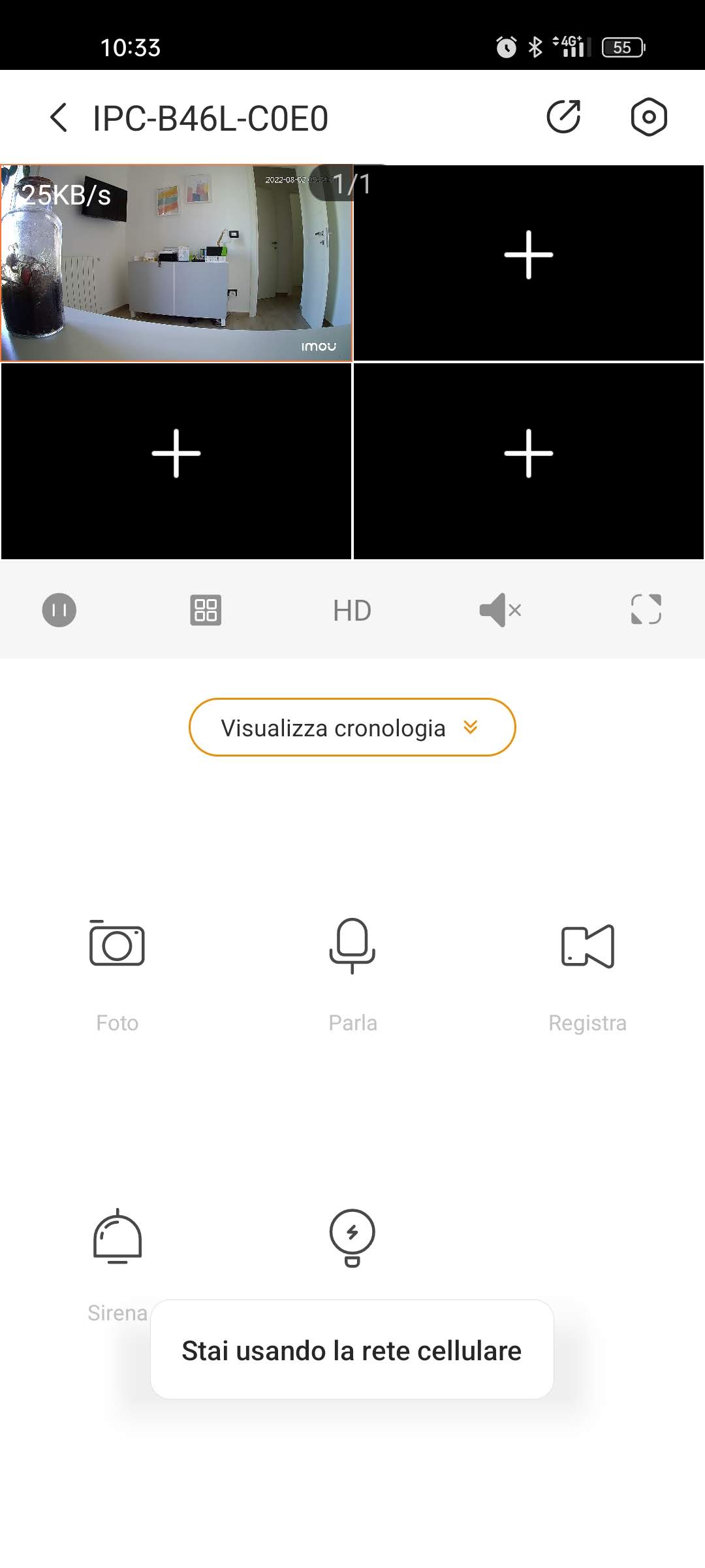 Al di là di quanto segnalato sopra, l’applicazione è ben progettata e ricca di funzionalità. Permette anche il funzionamento con più telecamere, mostrando il flusso video nella stessa schermata. Questa è una funzione particolarmente utile nel caso in cui stiate progettando di installare un sistema di telecamere: avere la visione contemporanea di quattro telecamere in uno stesso riquadro fornirà una panoramica più completa.