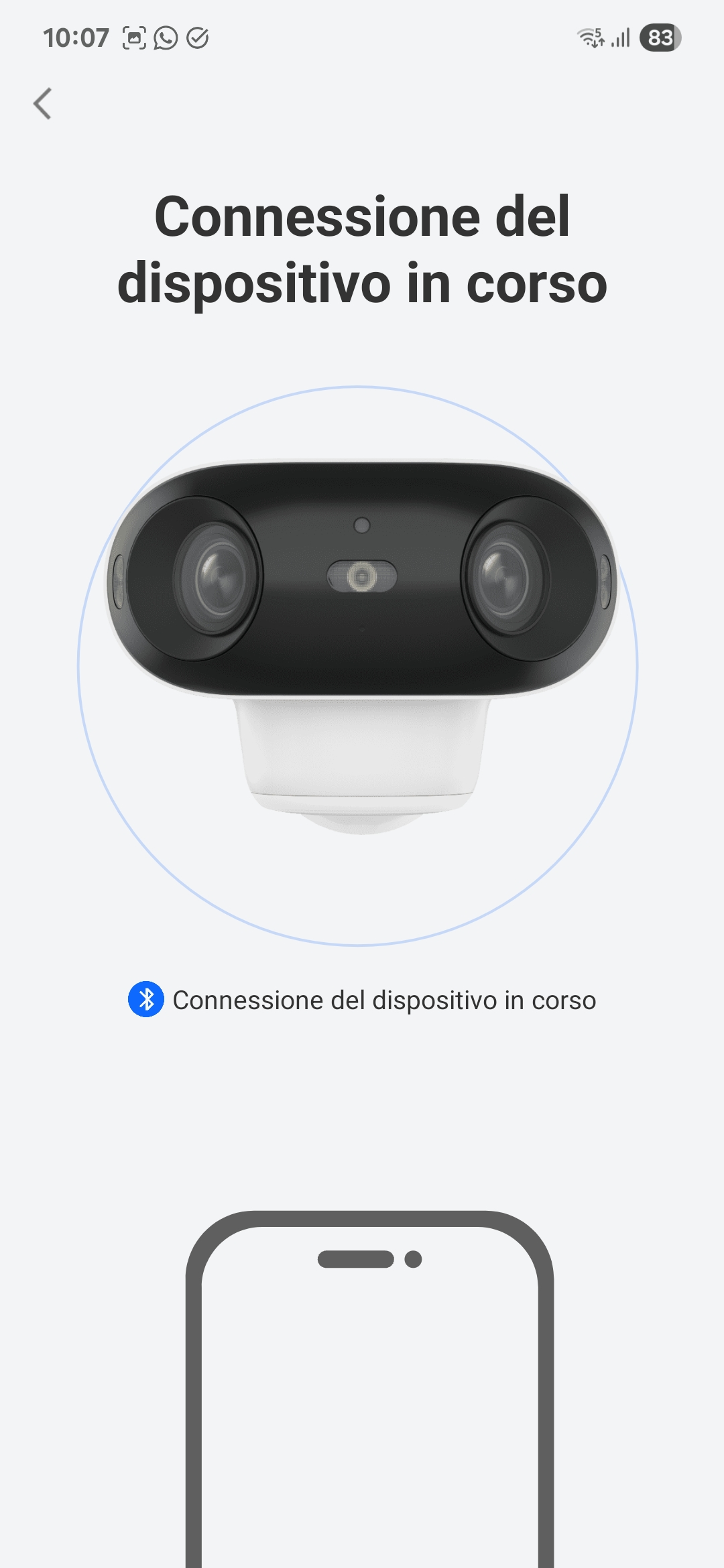 Sulla faccia frontale svetta la doppia camera che, come si è detto più volte, è in grado di restituire video panoramici a 180 gradi, senza necessità di installare più camere nella stessa zona, e senza dove utilizzare camere motorizzate.