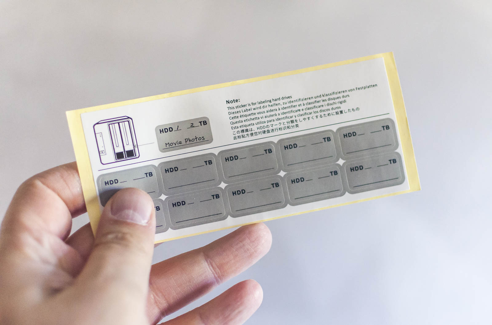 All’interno il NAS, qui arrivato vuoto ma alcuni rivenditori potrebbero proporre soluzioni già pronte con i dischi, è accompagnato in uno scomparto a se, sempre in cartone, l’alimentatore esterno, un cavo Ethernet, due piedini di riserva e un adesivo per la classificazione dei dischi.