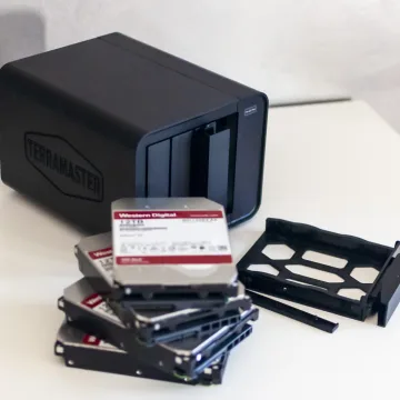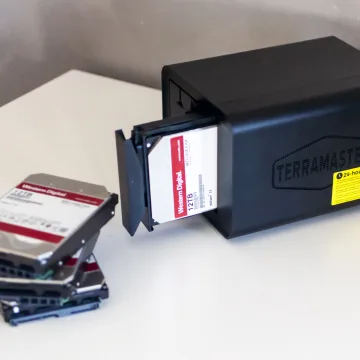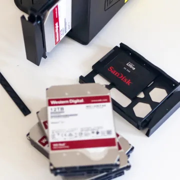 Nel nostro caso abbiamo usato un set di quattro dischi WD Red da 12 TB l’uno (48 TB in totale) ma il NAS può ospitare sino a 88 TB (con quattro dischi da 22 TB l’uno) anche se il mercato ha già pronte unità da 24 TB.
