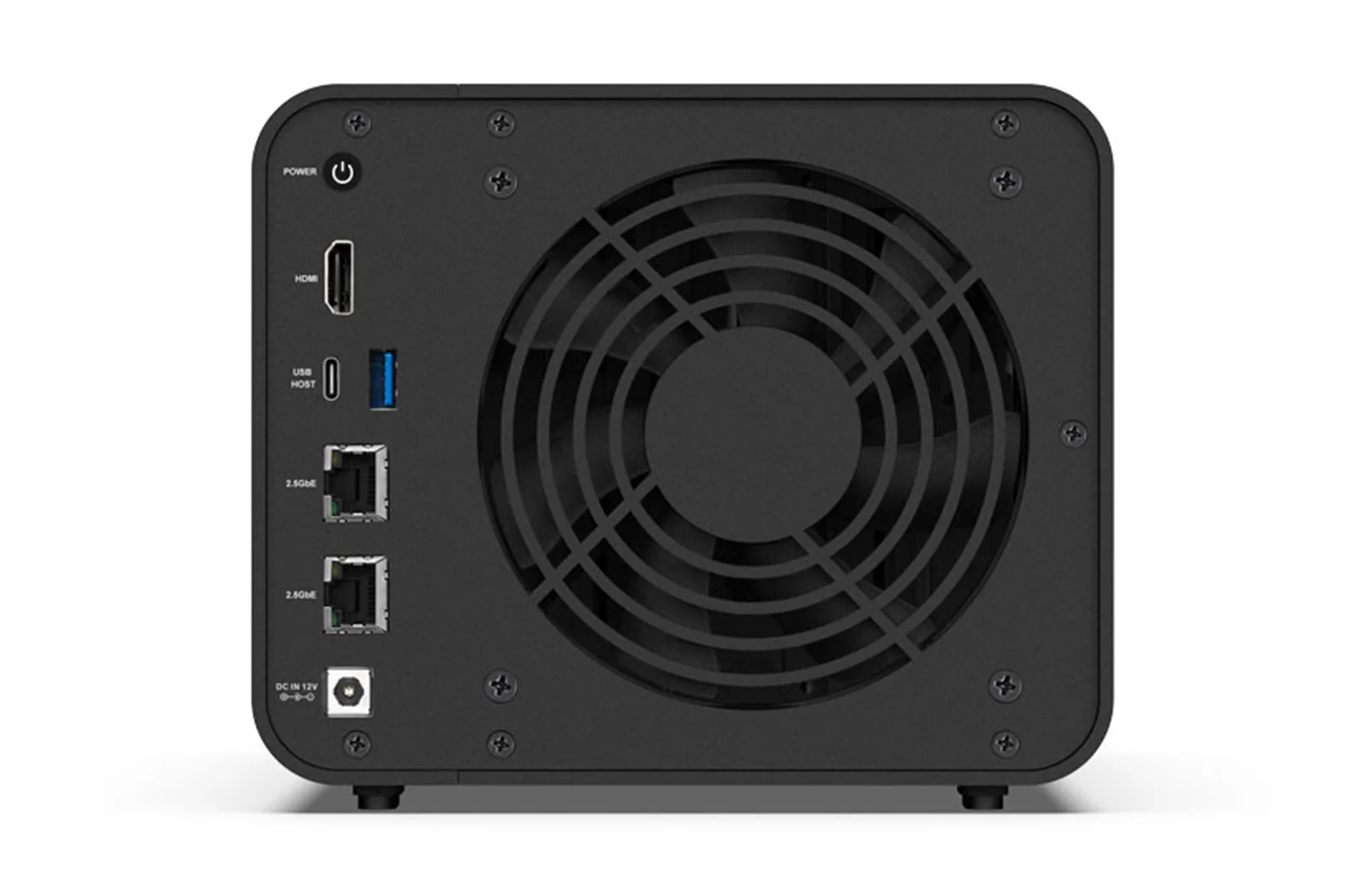 Oltre a queste sempre nella parte posteriore sostano due porte Ethernet a 2.5GbE su connettore RJ-45 e una porta HDMI 2.1, a cui si affianca la ventola principale e il connettore per l’alimentazione.