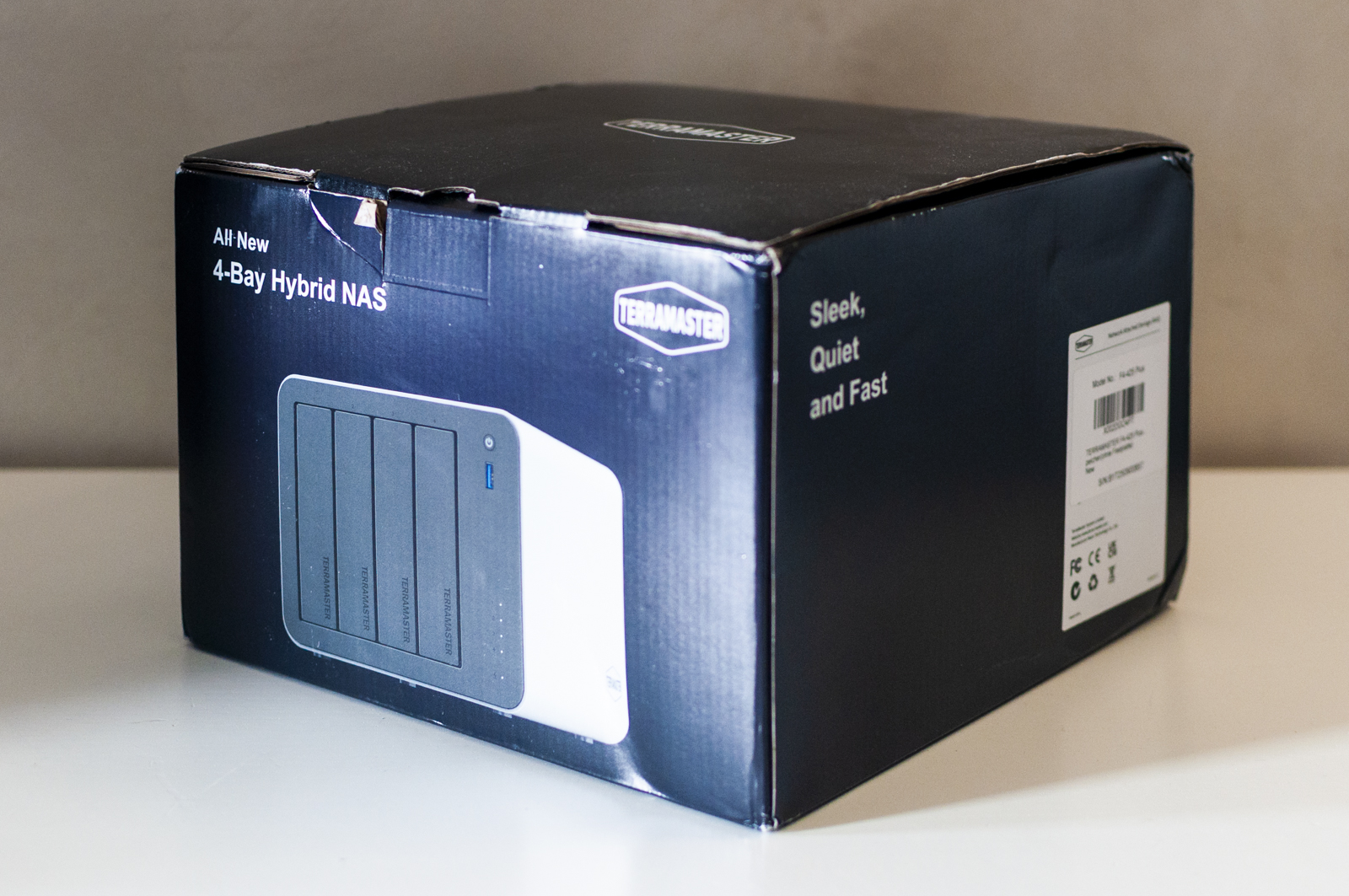 L’unpacking del TerraMaster F4-425 Plus sorprende sin da subito: si nota come la crescita del marchio si manifesti a ogni nuovo prodotto. La sensazione di progetto di eccellente livello l’avevamo già avuta con il TerraMaster D1 SSD Plus e qui si ripete grazie a una confezione ben realizzata, essenziale ma curata, con scatola in cartone nero che raccoglie tutti gli accessori.