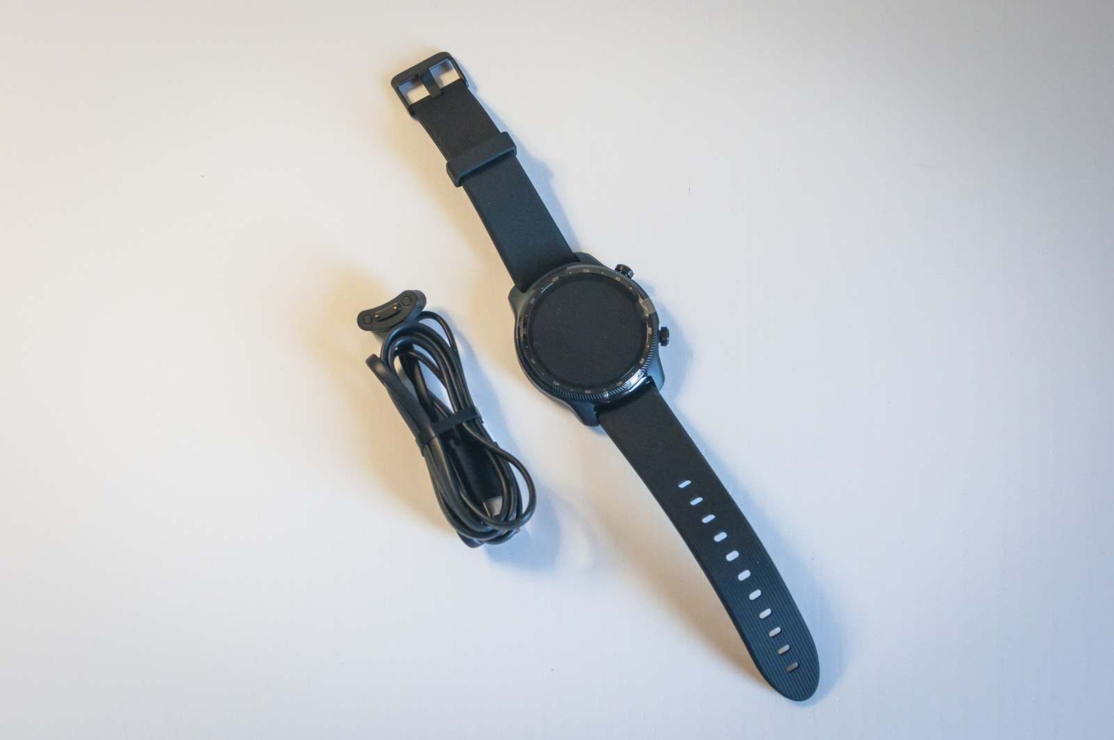 All’interno trova posto solo l’orologio e il cavo di ricarica dato da un connettore proprietario (qui si preferiva qualche cosa di più standard) via USB-A. L’orologio è realizzato in acciaio inossidabile nero, e una ghiera fissa di tipo sportivo, anche se non ha nessuna funzione se non estetica e di protezione del vetro.