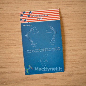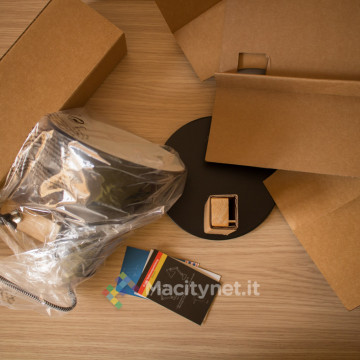 La lampada si compone principalmente di quattro parti che sarà necessario assemblare in quanto arriva a casa smontata per risparmiare spazio nella confezione di vendita, molto più piccola e maneggevole.
