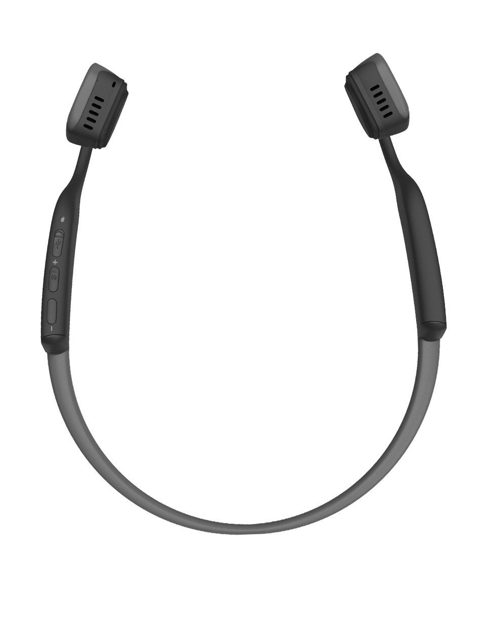 Le Trekz Titanium non solo utilizzano un processo per la riproduzione del suono che è differente dal resto del mercato, ma appaiono visibilmente differenti da tutto quel che abbiamo visto fino ad oggi. Tecnicamente sembrano una via di mezzo tra le cuffie ad archetto e quelle libere con auricolari uniti solo da un cavo. Questo perché i due elementi che poggiano sulle ossa zigomatiche sono uniti da una sorta di fettuccia flessibile, quasi a molla, ma nello stesso tempo rigida. È realizzata in Titanio e spinge con una certa decisione i due elementi vibranti contro l’osso.