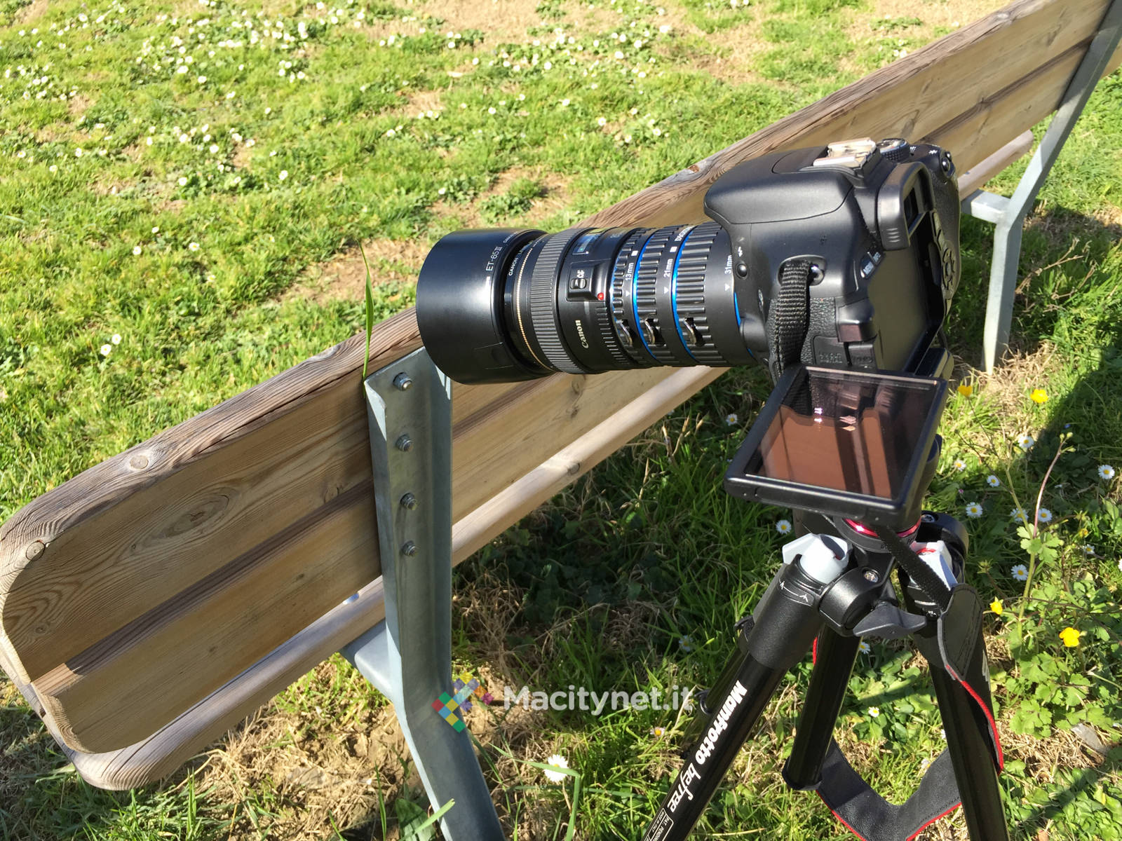 E’ quindi fondamentale utilizzare i tubi su cavalletto e, per una più facile gestione dell’inquadratura e della messa a fuoco, in Live View, ovvero guardando in tempo reale attraverso il display della reflex anziché inquadrando dal mirino. Anche per la messa a fuoco, nonostante gli automatismi lo consentono, abbiamo trovato più comodo mettere a fuoco manualmente attraverso la ghiera dell’obiettivo in quanto nel nostro corpo macchina, una Canon 600D, quindi un modello entry level, la messa a fuoco in Live View è molto lenta.