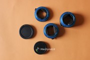 Molto leggeri (tutti e tre insieme compresi i tappi raggiungo i 140 grammi sulla nostra bilancia da cucina), permettono singolarmente di distanziare l’obiettivo di 13 mm, 21 mm e 31 mm, per un totale quindi di 65 mm. Il corpo esterno così come le sezioni interne sono in plastica nera di buona qualità, ma nulla di eccezionale al tatto: l’elevata rigidità è conferita dalle sezioni in alluminio anodizzato (nel nostro caso verniciato di blu elettrico), che ne garantiscono un’elevata durabilità nel tempo. Discutibile la scelta dei pulsanti di aggancio e sgancio dei tubi, costituiti sostanzialmente da una linguetta in metallo che, sebbene risulti sicuramente più resistente e durevole nel tempo rispetto a quelli in semplice plastica delle soluzioni concorrenti, è di una forma tale che ne rende difficoltoso l’inserimento e l’estrazione dalla sacca inclusa nella confezione, (troppo precisa, addirittura stretta, per le misure). L’abbiamo subito sostituita con un’altra sacca simile più larga ed a quel punto non abbiamo più avuto problemi nell’utilizzare quotidianamente i tubi, proteggendoli tutte le volte che li abbiamo riposti nello zaino.