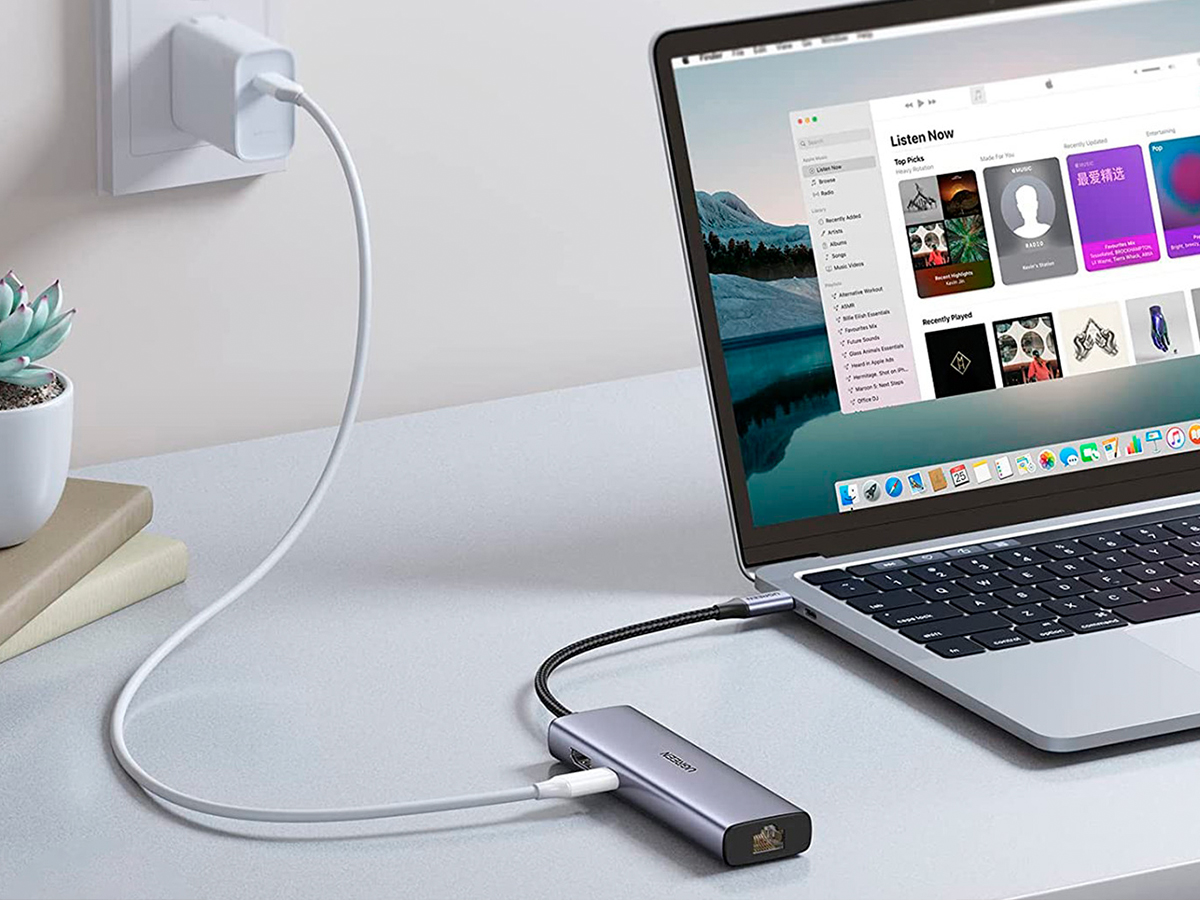 Lo Ugreen USB C 7 in 1 Hub è ovviamente anche un HUB PD Pass-Through, il che significa che una volta messo sulla scrivania può essere usato per alimentare il computer (sino a 100 W), ottimizzando l’alimentatore in dotazione al Mac.