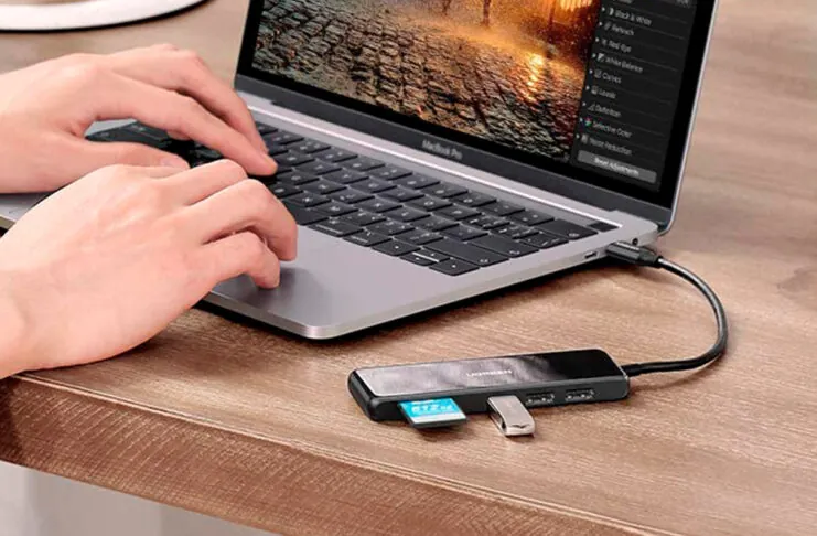 Tra le cose, abbiamo apprezzato molto la lunghezza del cavo USB-C decisamente superiore rispetto alla concorrenza. Quando si usa questo hub Ugreen sulla scrivania si allontanano i dispositivi dal Mac, favorendo anche la dissipazione del calore
