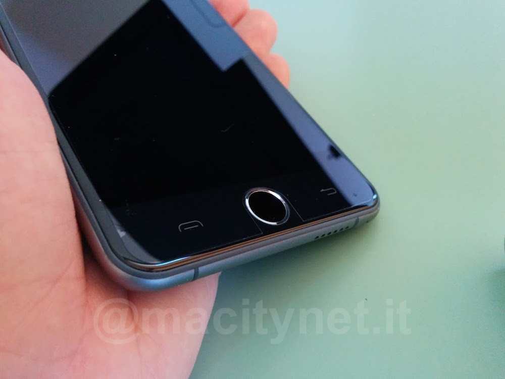 Una delle caratteristiche più evidenti di questo terminale, oltre alla presenza di 3 GB di RAM, è senza dubbio il lettore di impronte digitali, posizionato al di sotto del tasto frontale, che viene circondato da una finitura in metallo “alla” TouchId. Esteticamente, e anche dal punto di vista funzionale, risulta identico a quello che Apple ha inserito sui nuovi dispositivi iOS. Ed infatti, a differenza di quanto avveniva con Galaxy S5, il sensore non è posto sulla parte in basso del display, ma si trova proprio al di sotto del pulsante home. In questo modo sarà sufficiente sfiorarlo per sbloccare il dispositivo.
