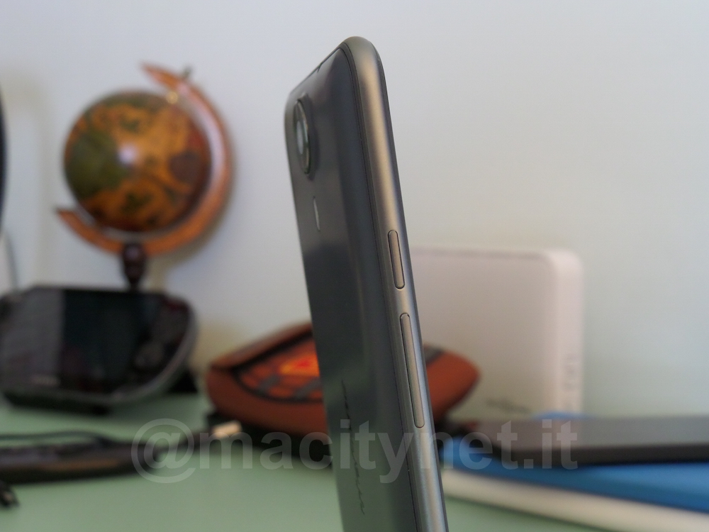 uleFone Be Touch è un terminale da 5,5 pollici, al limite della categoria di fatto un vero e proprio phablet. Le dimensioni, e il peso, sono così generosi: 158.1 x 77.4 x 8.60 mm, con un peso di 160 grammi. In mano il telefono si tiene molto bene, il peso e ben distribuito e, nonostante sia realizzato in materiali plastici, il terminale è ben assemblato, privo di scricchiolii e non troppo scivoloso. L’aspetto di uleFone Be Touch è elegante, molto pulito, soprattutto sul frontale, anche se massiccio. Si tratta di un dispositivo grande, adatto a coloro che necessitano di un display molto ampio. Il lato destro è completamente libero, mentre il bordo superiore presenta l’ingresso jack da 3,5 mm e quello per la ricarica micro USB. Sul lato sinistro, invece, bilanciere per il volume e tasto di accensione. Infine, sul bordo inferiore, l’altoparlante di sistema. L’audio in capsula, durante una conversazione, è davvero molto pulito, chiaro e privo di qualsiasi fruscio. Sempre in conversazione, in vivavoce, il volume è un po’ basso, ma comunque pulito e senza alcuna distorsione. Quanto a volume va meglio, invece, se si ascolta una canzone o su guarda un video: in questa circostanza è più alto rispetto alla chiamata, ma sempre decisamente pulito e fedele.