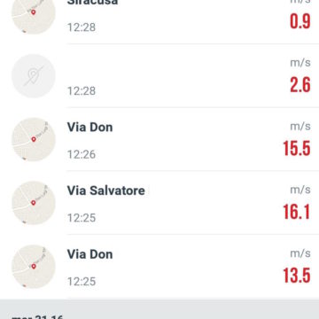 Tra le varie funzioni dell’app anche quella del diario cronologico, che permette di registrare tutte le misurazioni effettuate, oppure quella che notifica all’utente quando le condizioni del vento risultano ideali per la propria attività in una determinata zona geografica. Dopo ogni misurazione, nel caso in cui siano attivi i servizi di localizzazione sul proprio smartphone, l’app restituirà anche l’esatta via della rilevazione, nonché temperatura registrata in quella zona e pressione atmosferica in mbar. Il tutto, in un0interfaccia moderna e, soprattutto, facilmente leggibile.
