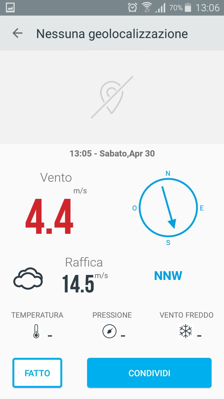 Tra le varie funzioni dell’app anche quella del diario cronologico, che permette di registrare tutte le misurazioni effettuate, oppure quella che notifica all’utente quando le condizioni del vento risultano ideali per la propria attività in una determinata zona geografica. Dopo ogni misurazione, nel caso in cui siano attivi i servizi di localizzazione sul proprio smartphone, l’app restituirà anche l’esatta via della rilevazione, nonché temperatura registrata in quella zona e pressione atmosferica in mbar. Il tutto, in un0interfaccia moderna e, soprattutto, facilmente leggibile.