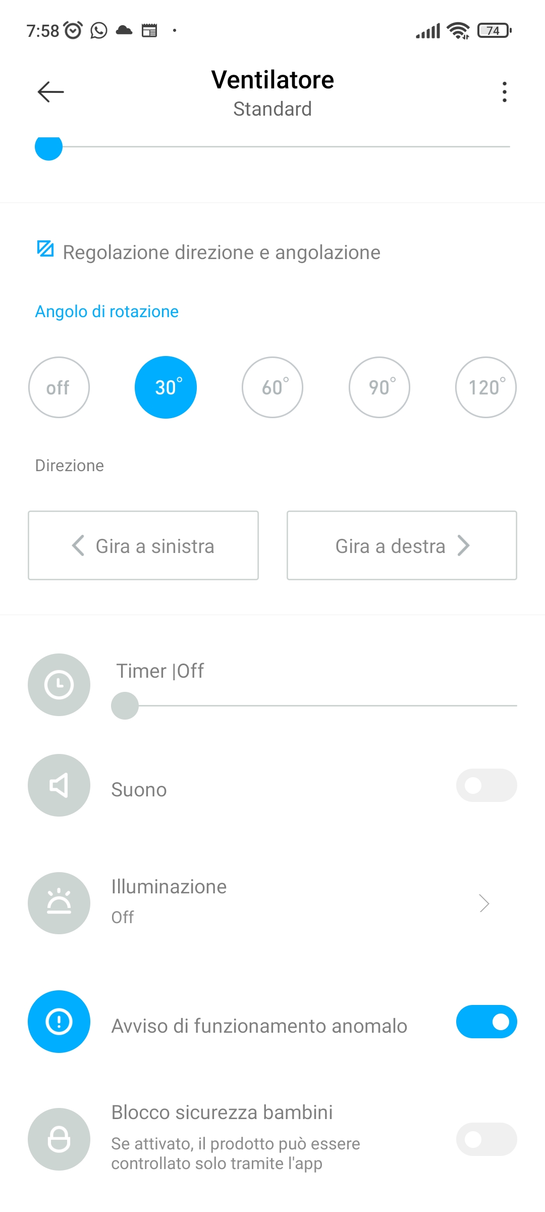 E’ silenzioso, e alle velocità più basse si fatica a sentirlo, seppur si verrà sempre e comunque colpiti da un getto d’aria ben avvertibile. Sulla parte superiore ci sono dei pulsanti. Oltre all’accensione e allo spegnimento manuale, è possibile regolare tra quattro velocità, mentre il tasto posteriore serve per collegare il ventilatore alla rete WiFi. Già, è smart.