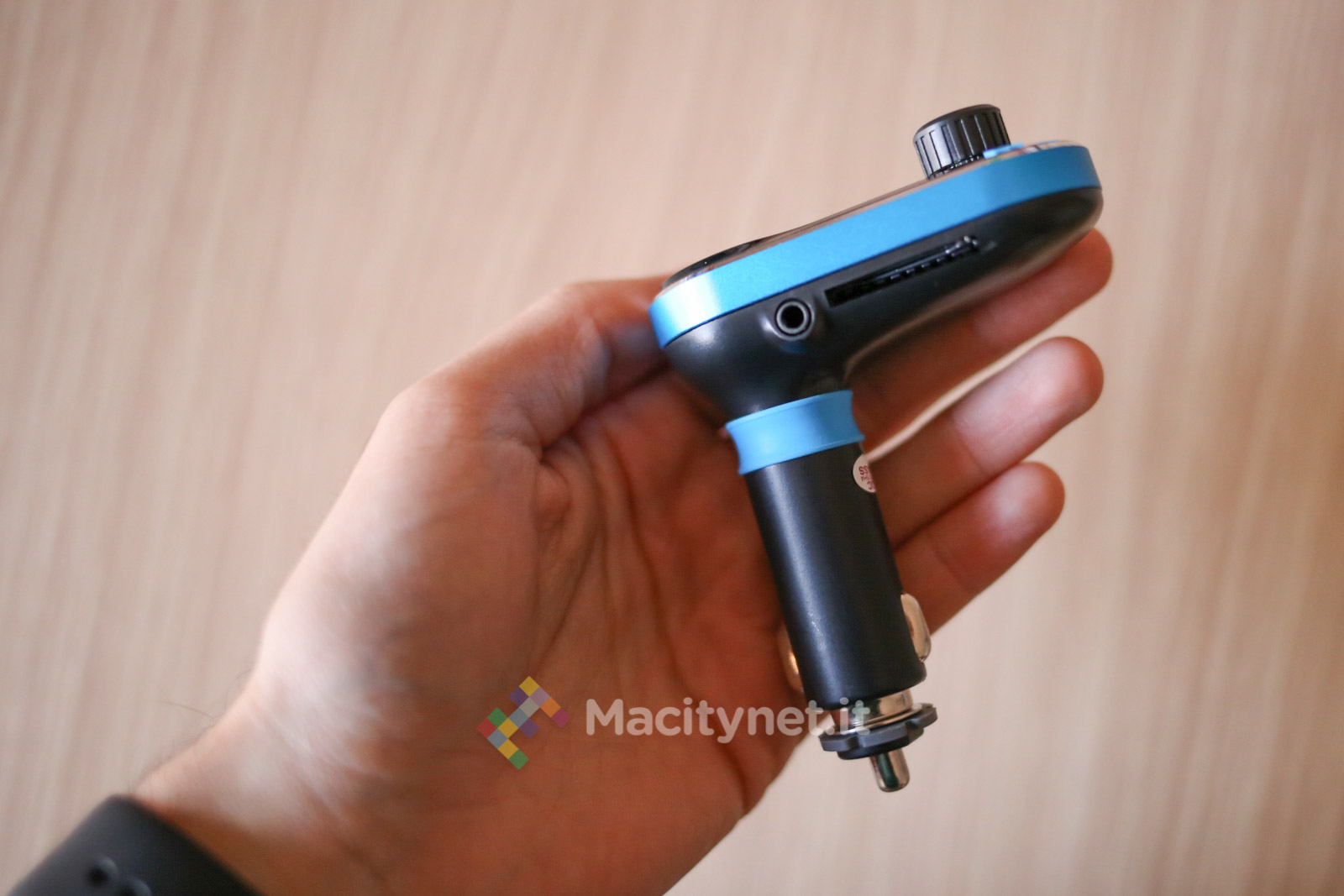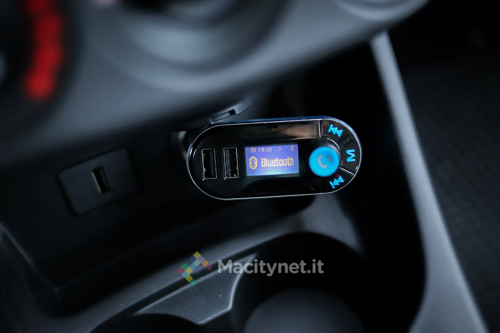 Il funzionamento è simile a molti altri prodotti simili. Si accende l’autoradio e si seleziona una stazione FM vuota; la stessa frequenza si riporta poi sul display del dispositivo premendo il tasto M e aiutandosi con i tasti FWD e BWD. Se si collega uno smartphone tramite Bluetooth è possibile controllare la riproduzione musicale anche con gli appositi pulsanti FWD e BWD: la rotella centrale invece, se premuta, mette in pausa e riavvia la riproduzione musicale, mentre ruotandola si regola il volume.