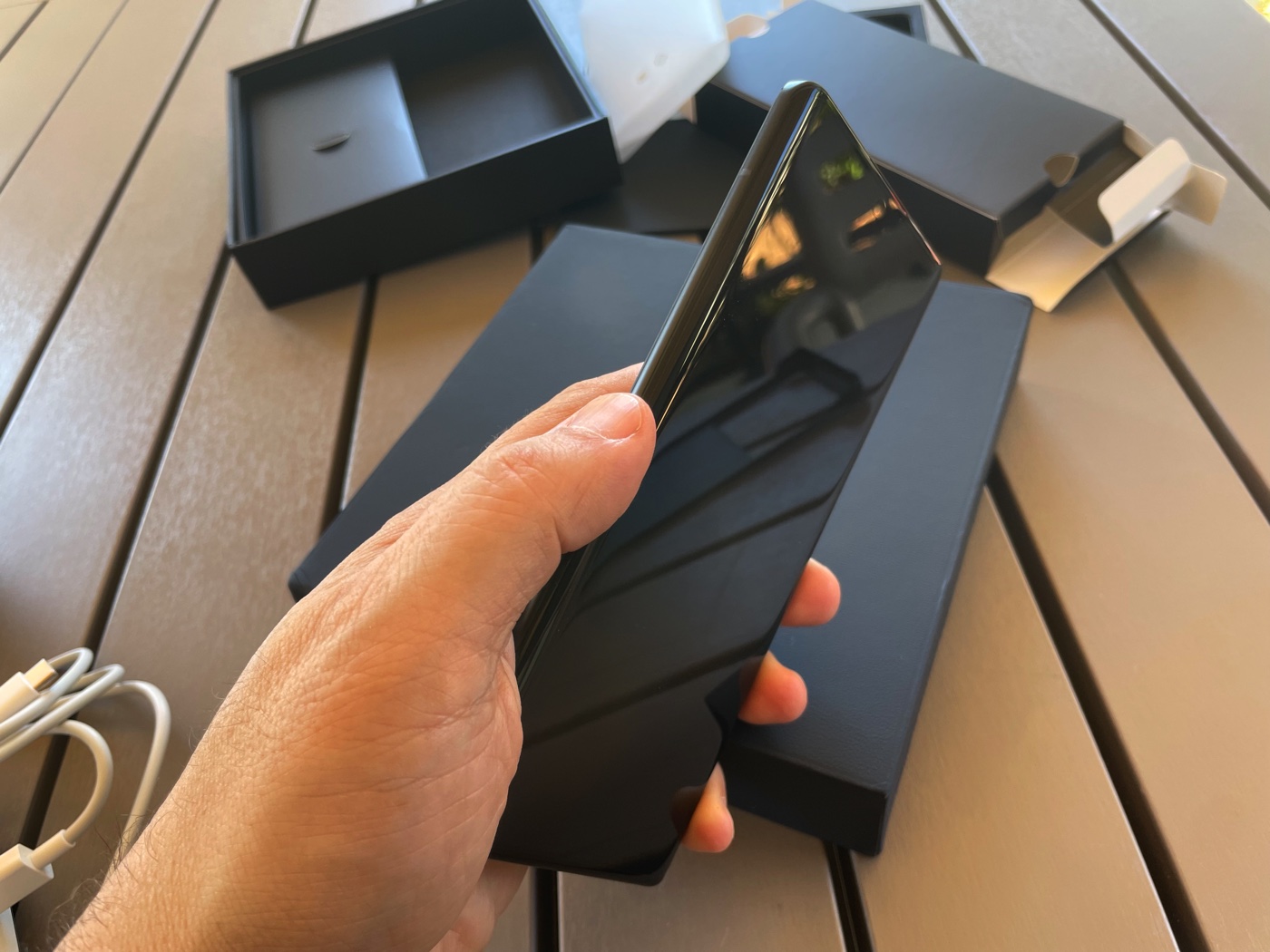 Nella confezione troviamo il suo super alimentatore con cavo USB-C e delle cuffie sempre con connettore USB-C ed una cover che praticamente compre gli angoli e metà del retro lasciando incustodite le curve laterali Nel nostro modello era montata una pellicola salvaschermo.