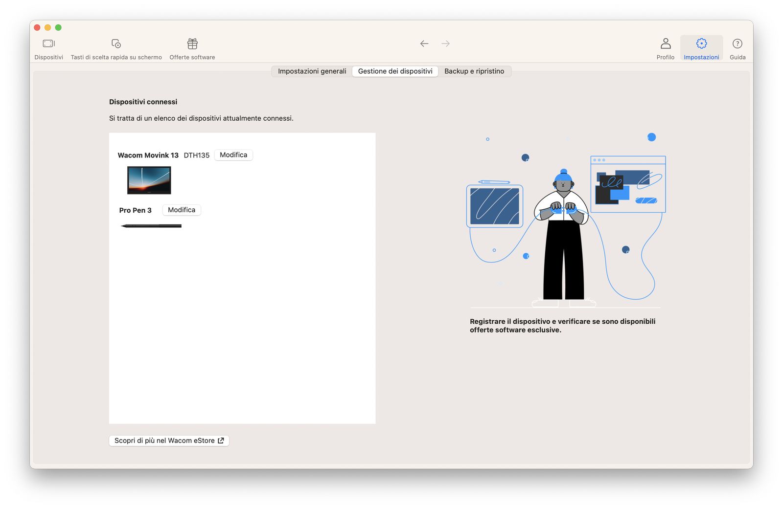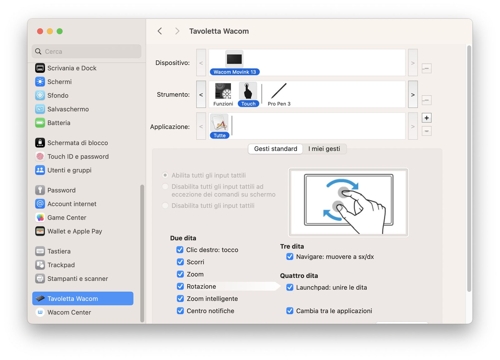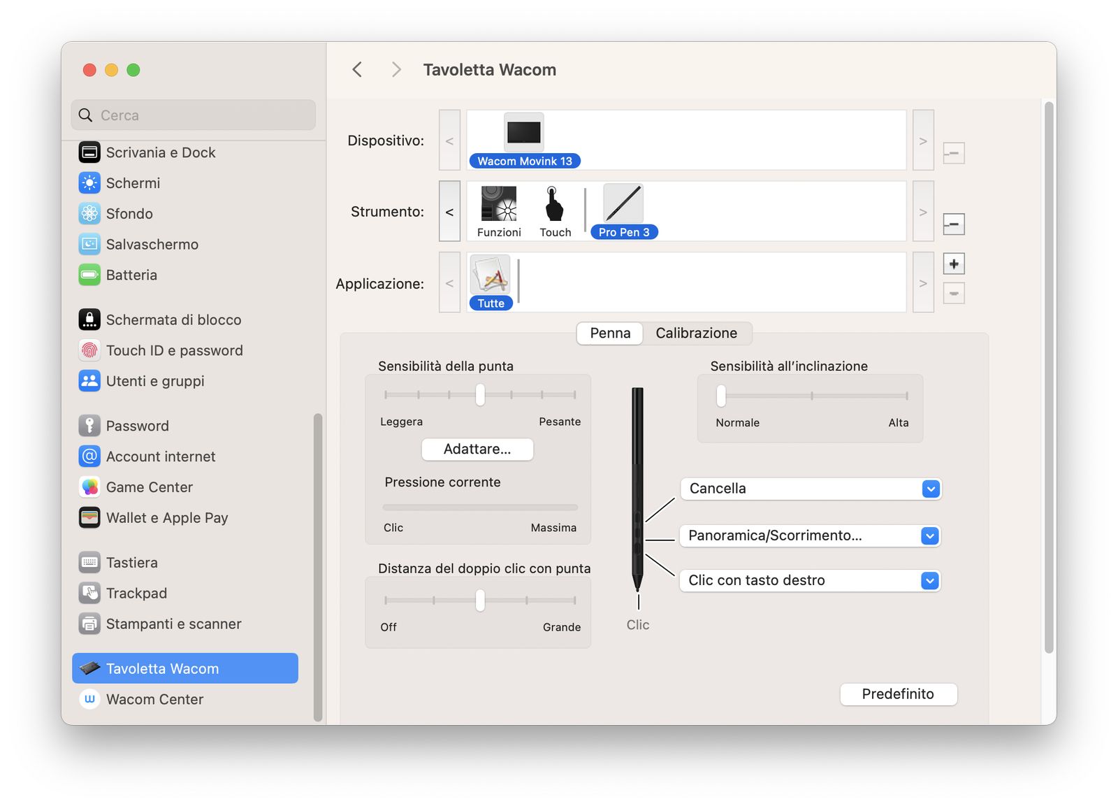 Al primo avvio parte subito Wacom Center, che permette di definire alcune preferenze nell’uso, oltre a Tavoletta Wacom presente su Impostazioni, che offre un grado di personalizzazione maggiore.