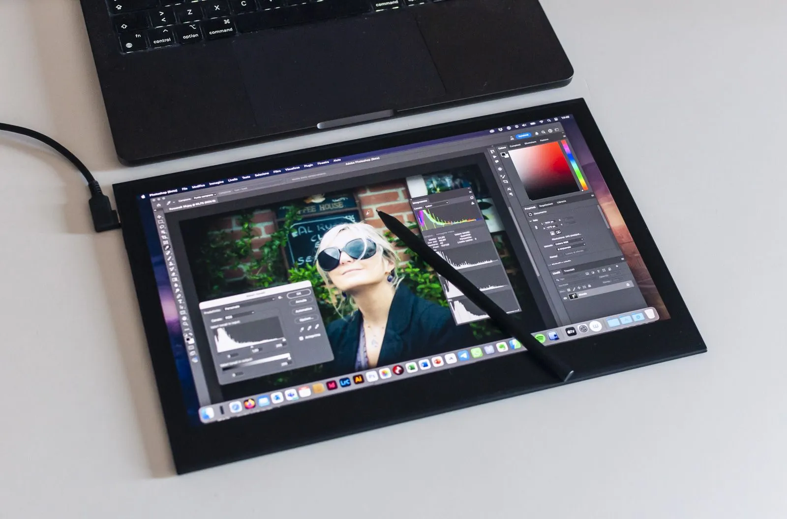 Specifiche che la rendono adatta a moltissimi scopi: uno straordinario secondo monitor per le operazioni da ufficio, una tavoletta davvero bella da usare sullo stand o in braccio per il disegno puro con Photoshop o altri software di grafica, ma anche uno strumento davvero importante per il ritocco fotografico anche con Lightroom.