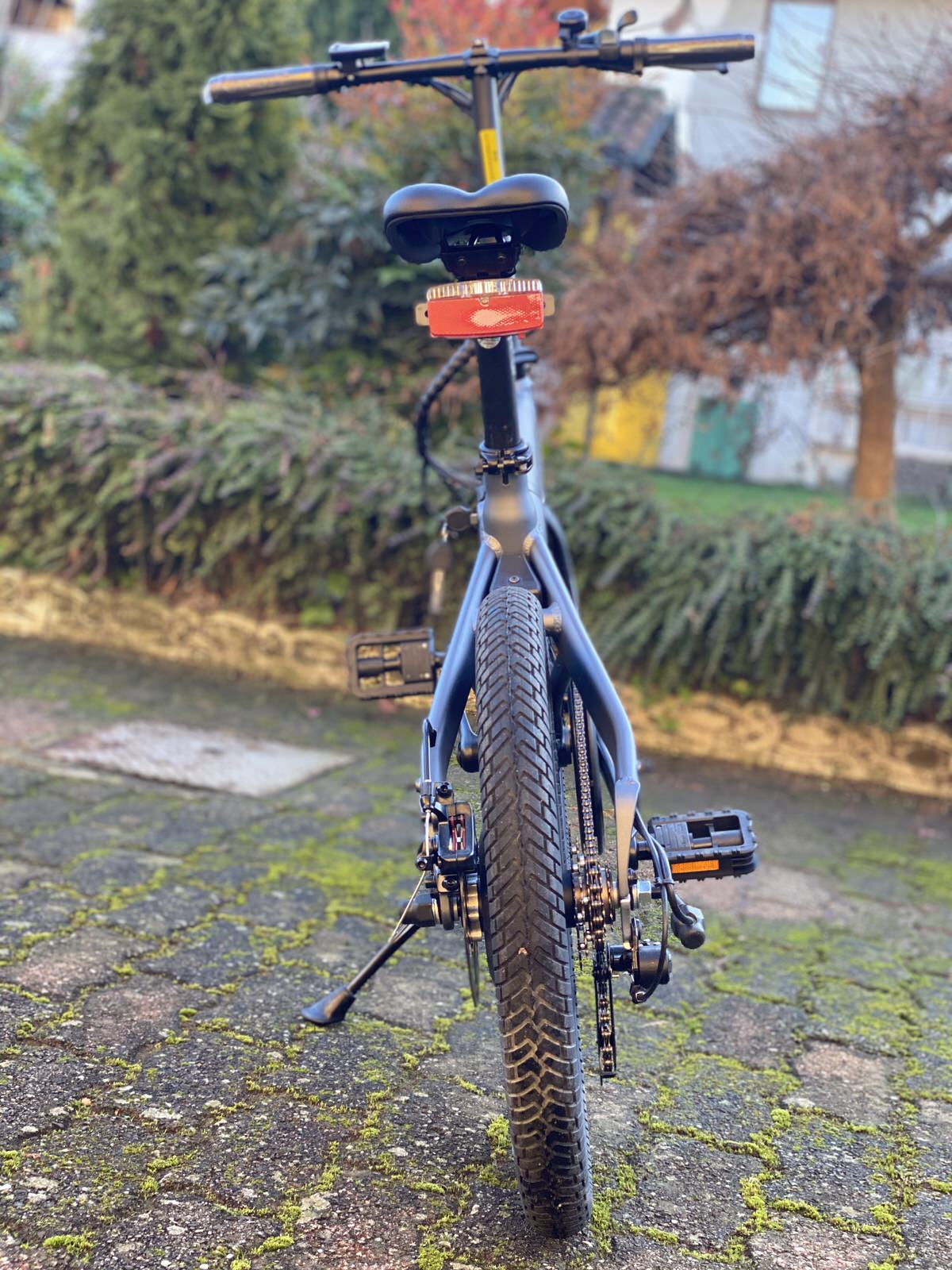 Le ruote da 20 pollici, tipiche di una BMX, sono più piccole di quelle di una bici da città, ma più grandi delle classiche 14 e 16 pollici di tante biciclette elettriche cinesi “low cost”. Sono abbastanza alte e larghe per assorbire le buche di una strada dissestata e persino per un fuoristrada leggero.