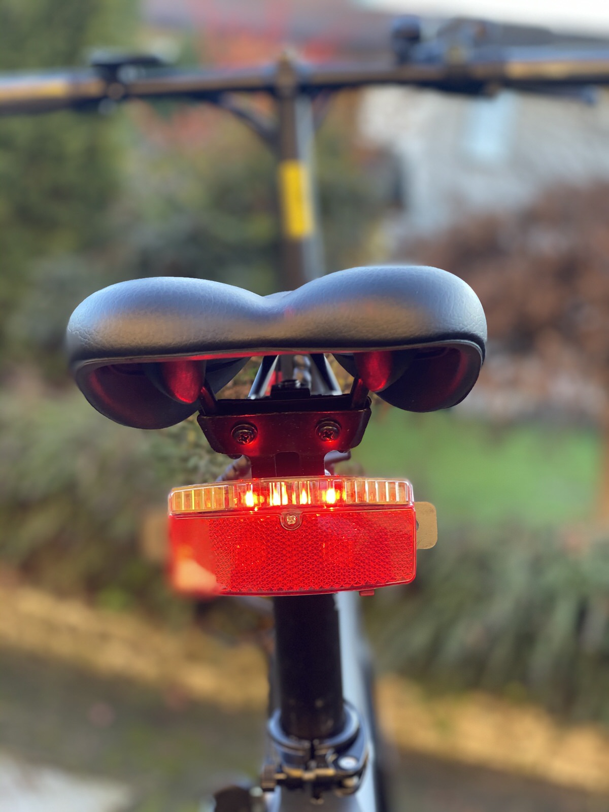 Il cavalletto è molto robusto, (anche se posizionato in una parte del telaio che se aperto lo fa interferire con la pedalata) i freni a disco di generose dimensioni, i controlli al volante sono ben impostati, il design è piacevole, il faro frontale potente. Quello posteriore, invece, misteriosamente va a pile e si deve accendere e spegnere con un interruttore.