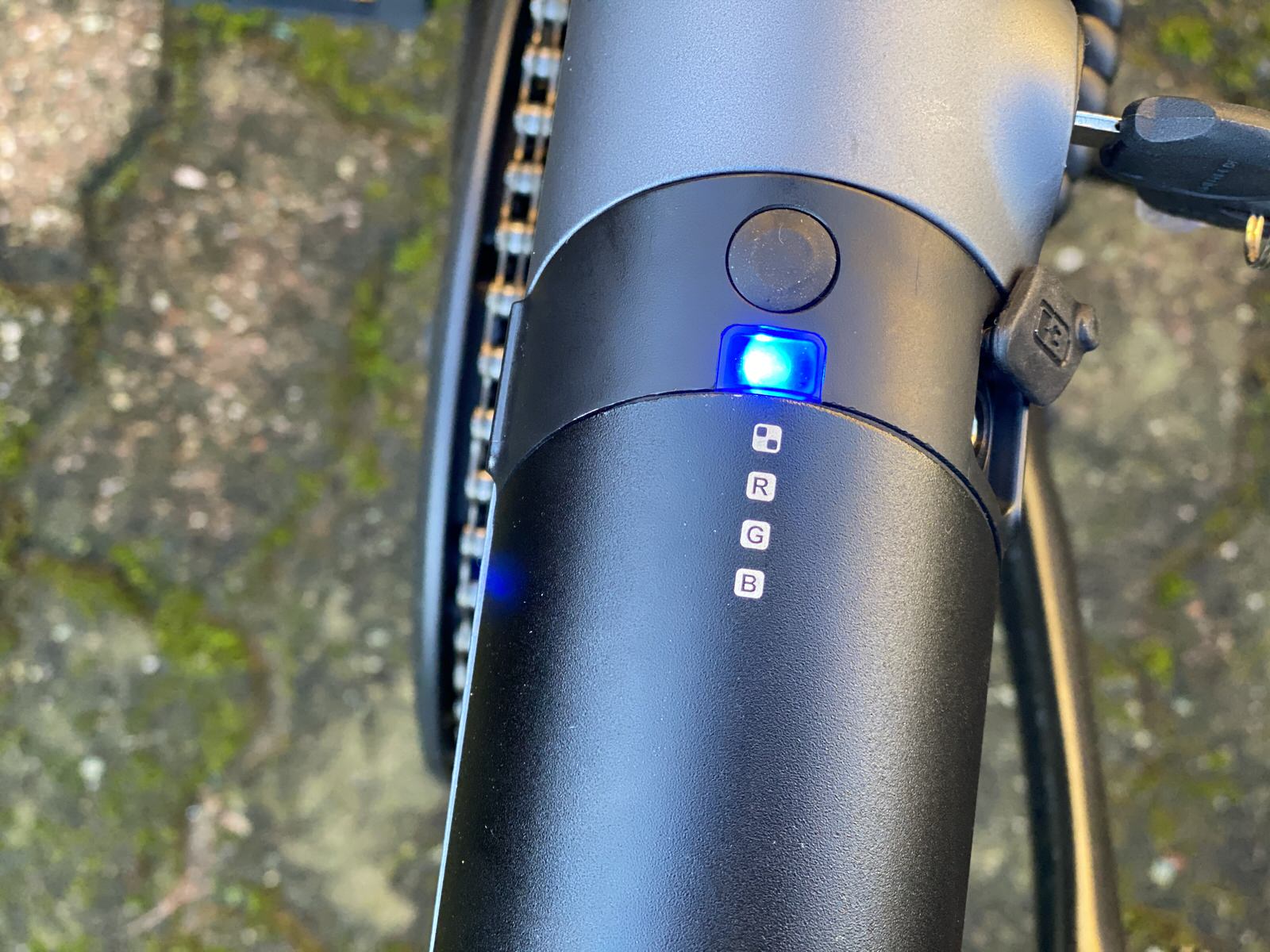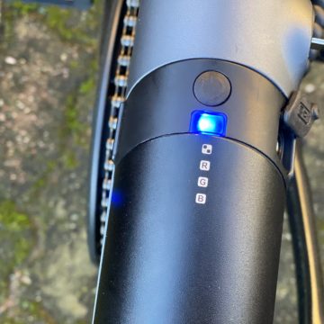 Una volta estratta, la batteria ha un tasto che accende i LED che manifestano la carica. Anche se la lunghezza del cavo comunque è sufficiente per ricaricare la batteria anche senza staccarla, il fatto che si possa separare dal telaio diventa un buon sistema di antifurto benché meno efficace che in altri simili prodotti visto che qui siamo di fronte ad una bici “vera” che può essere spostata pedalando senza difficoltà.