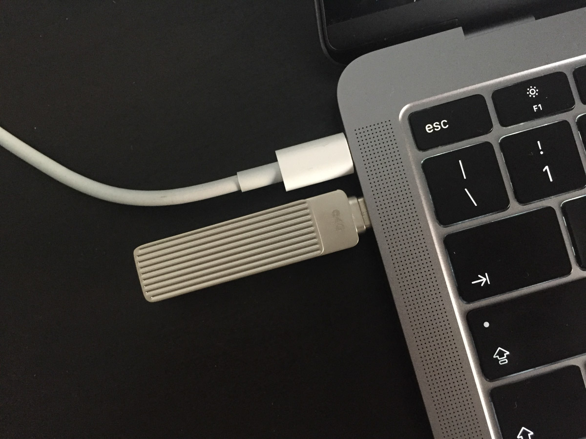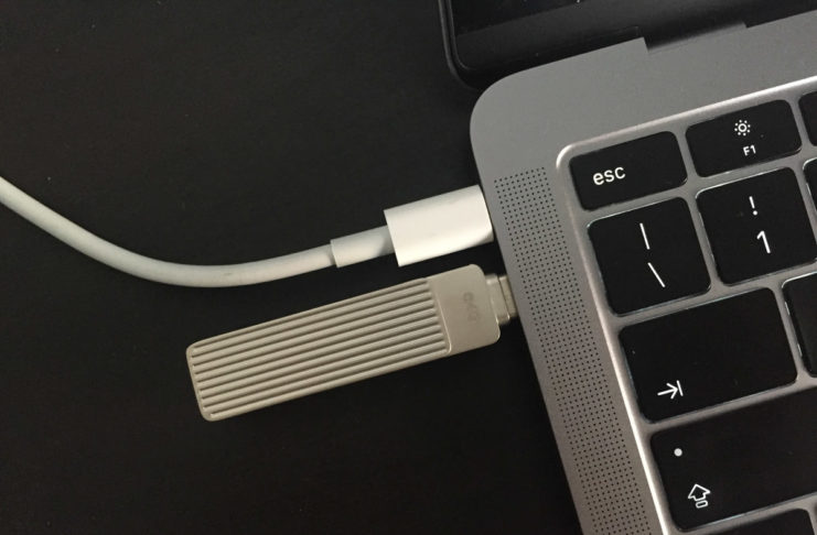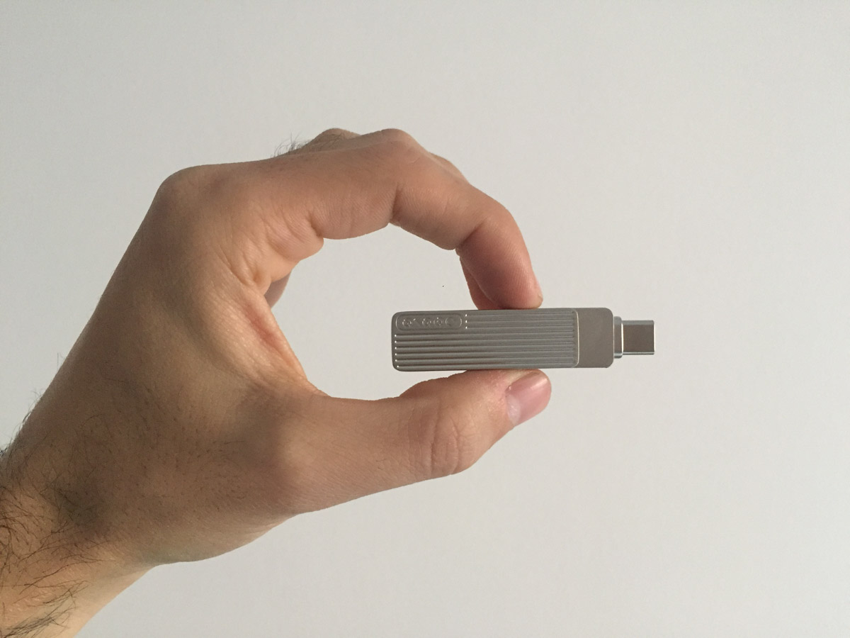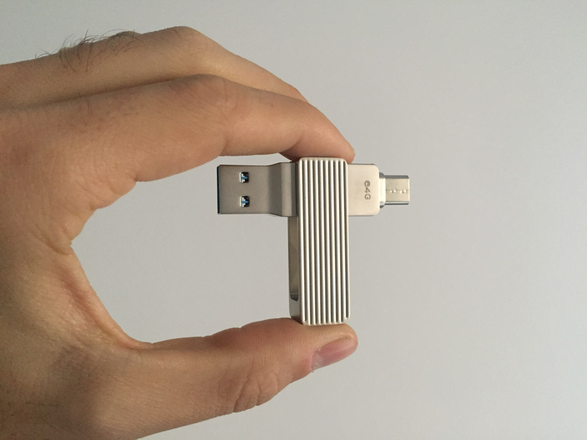 La posizione della placca non pregiudica il funzionamento della chiavetta: paradossalmente si può utilizzare la chiavetta anche posizionando la placca esterna “a T”, in quanto è sufficiente che ci sia abbastanza spazio per poter collegare una delle due spine ad un dispositivo, ma poter nascondere un connettore permette di ridurre le dimensioni della chiavetta, che così può ad esempio essere collegata alla spina USB-C di un MacBook mantenendo libero accesso ad una seconda presa adiacente.