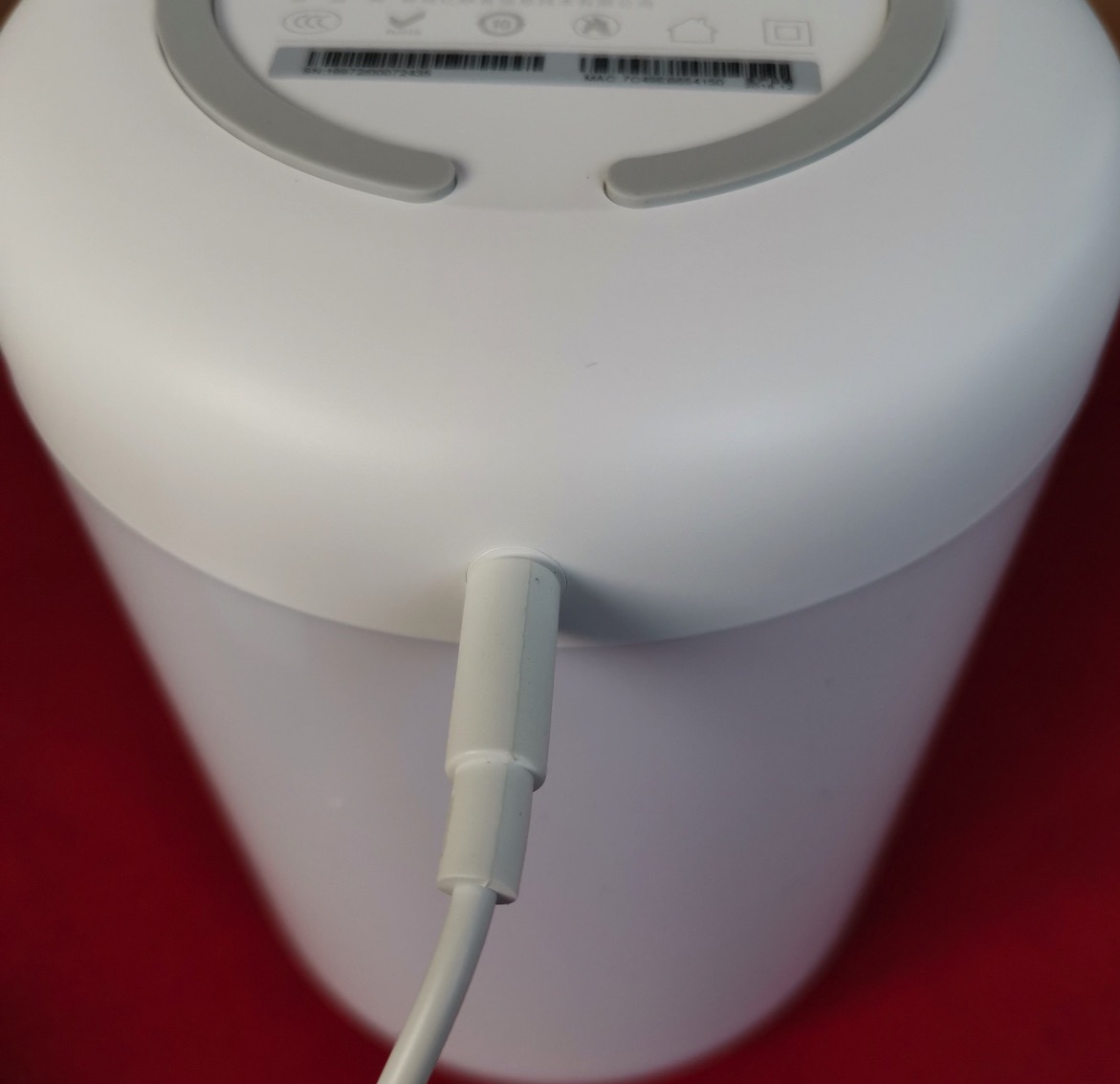 Scatola molto minimale con fondo bianco e scritte grigio scuro su cui la lampada bianca si nota con un po’ difficoltà: inutile che stiamo a ripetervi le caratteristiche riportate: solo il traduttore di Google ci permette di accedere alle specifiche ma dopo avere visto il familiare logo “Works with Apple HomeKit” apriamo fiduciosi il pacco per trovare un alimentatore con attacco polare e presa cinese (occorre il classico adattatore che vi abbiamo segnalato qui) e, inserita in una busta opaca bianca la lampada vera e propria che è un cilindro realizzato in due materiali.