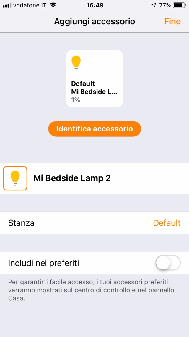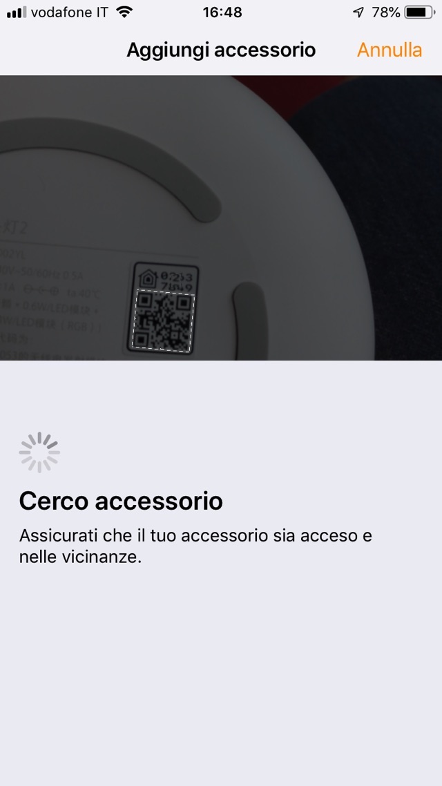 Una volta impostata la lampada con l’app Yeelight procedete ad includerla nel vostro sistema Homekit: sarà sufficiente inquadrare l’etichetta con il numero e codice inserirla nella vostra “Casa”, assegnargli un nome e la stanza di appartenza: da qui in poi potete gestire direttamente (e anche vocalmente) intensità luminosa, colore e accensione spegimento oltre a poterla includere in scene ed automazioni.