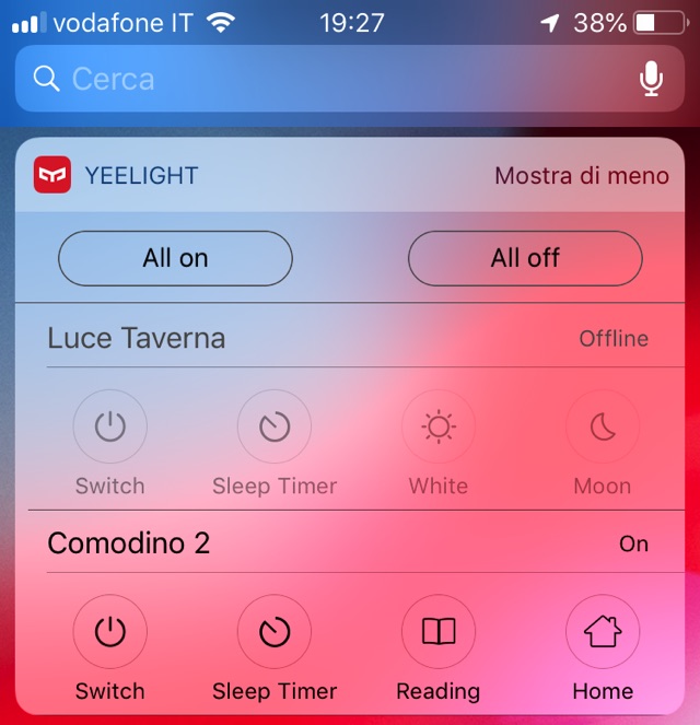 Il nostro consiglio personale è, a meno che non dobbiate gestire accessori diversi per la domotica in un ambiente multipiattaforma, quello di usare Yeelight per impostare tutte le funzioni sia su iOS che Android. Su iOS avrete la possibilità di usare i comandi Siri per accendere e spegnere le luci e pure di avere dei Widget con l’accesso diretto a molte funzioni particolari.