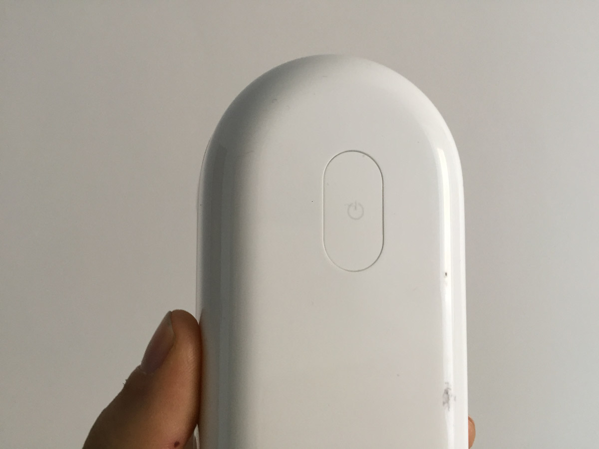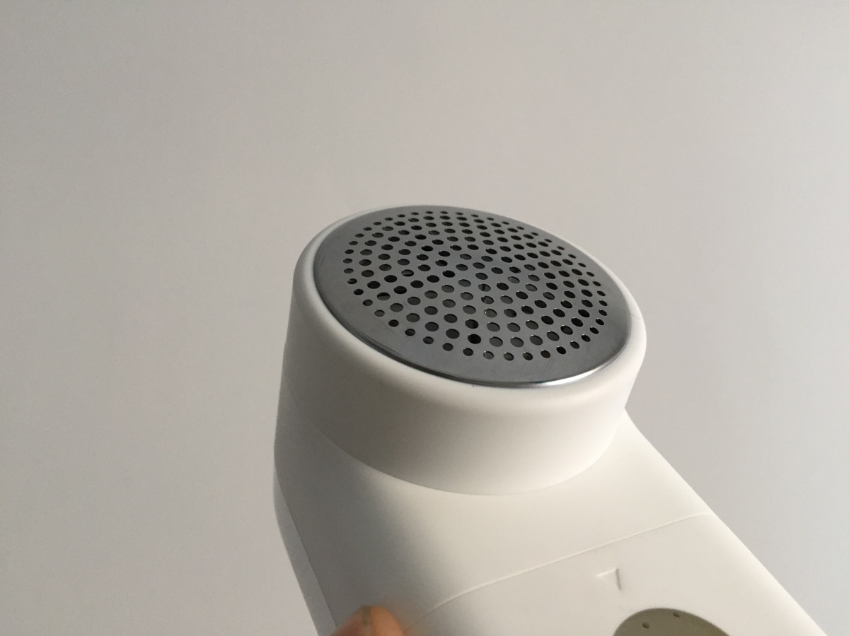 Sul fondo c’è la presa microUSB per la ricarica della batteria mentre sul retro un unico, ampio pulsante consente di accendere e spegnere il levapelucchi rispettivamente avviando e interrompendo la rotazione delle lame. Un piccolo indicatore LED che si accende di colore bianco è nascosto sul fondo della copertura posteriore, subito sotto il logo dell’azienda.