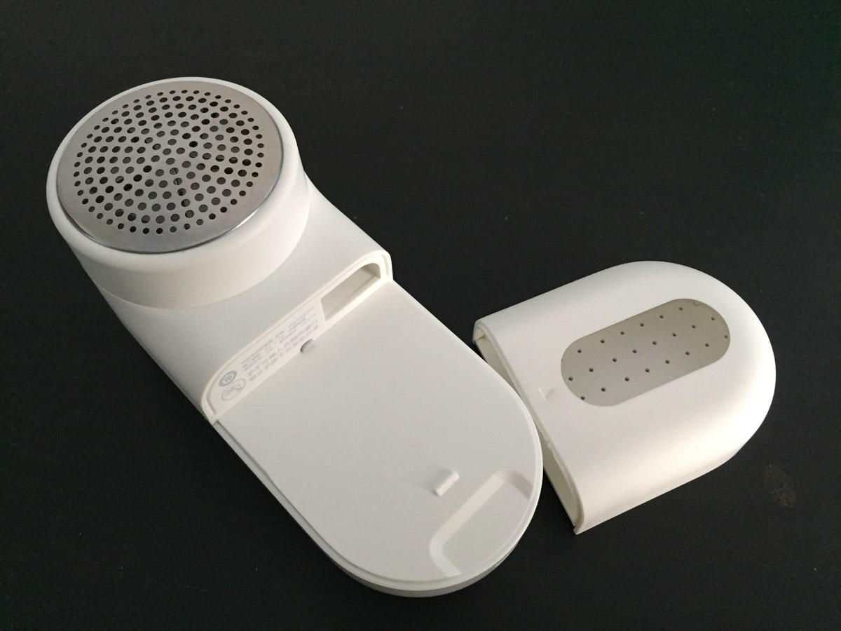 Un’ampia sezione dell’impugnatura è vuota: si tratta del serbatoio di raccolta dei pelucchi rimossi dai tessuti, mentre nel resto della struttura sono incassati i circuiti interni e la batteria destinata all’alimentazione.