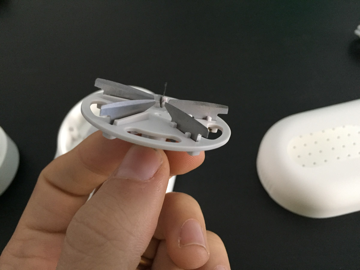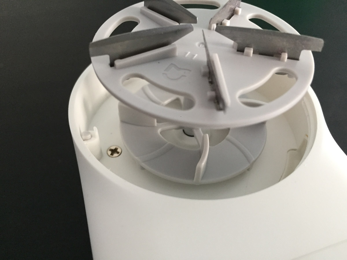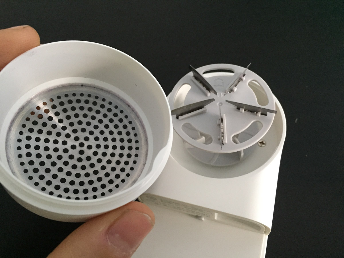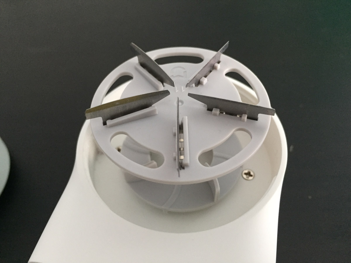 Facciamo inoltre notare che è presente un sistema di sicurezza che di fatto non consente di accendere il levapelucchi – o interrompe la rotazione delle lame se è già acceso – qualora venisse rimossa la griglia a protezione delle lame.