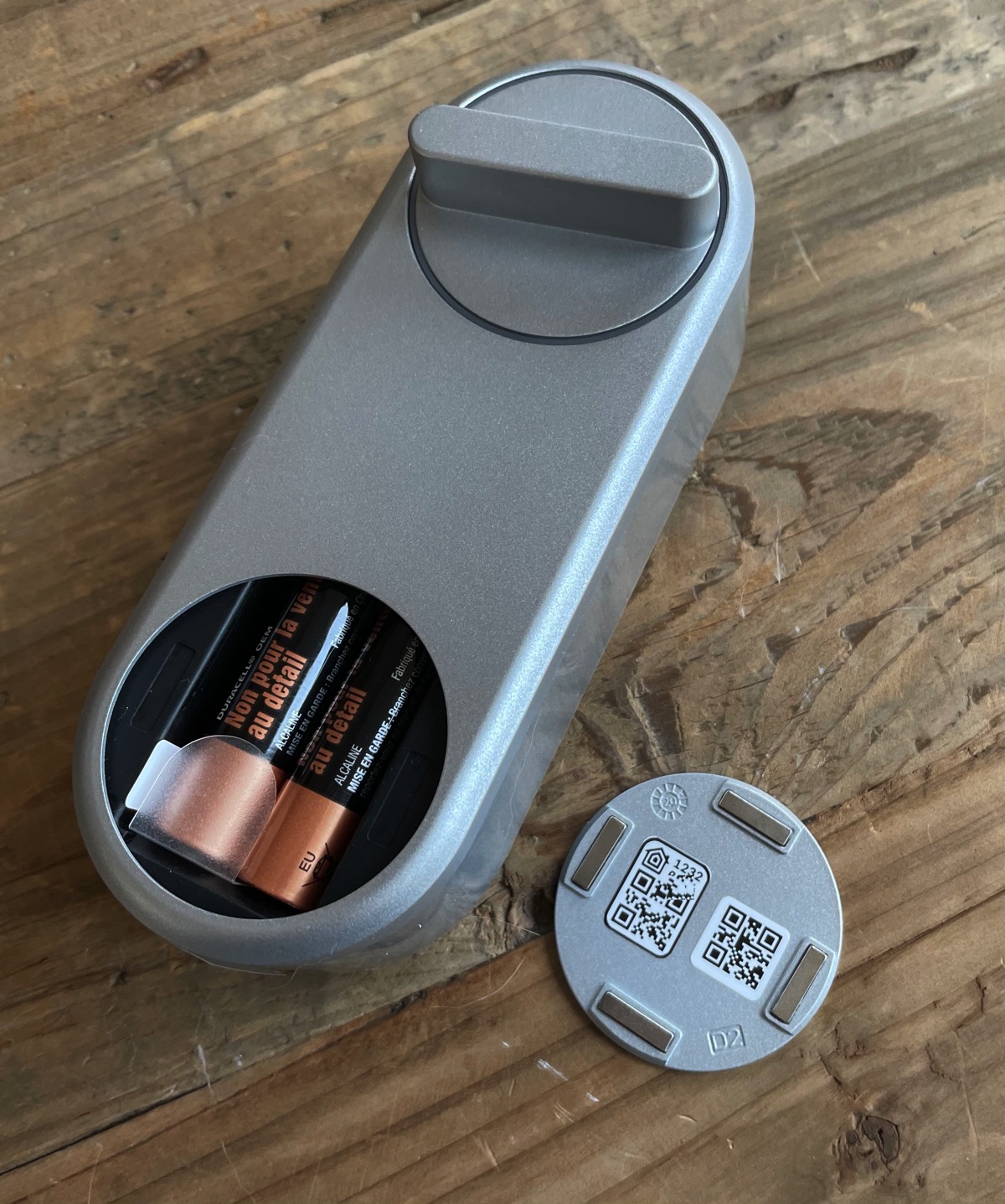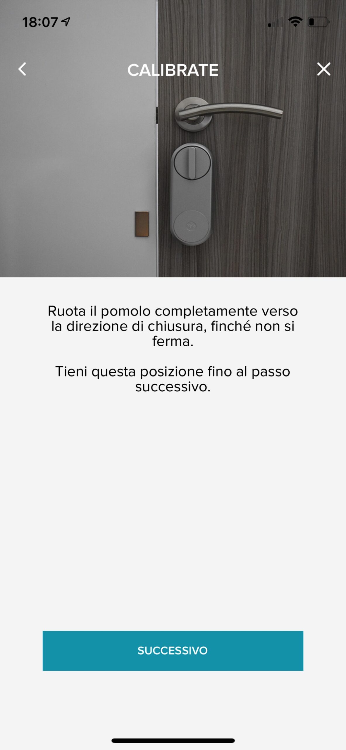 Una volta completata l’installazione meccanica si deve procedere con la calibrazione che avviene grazie alla presenza di un accessorio magnetico da applicare con un biadesivo alla cornice della porta: DoorSense. Il funzionamente avviene con il rilevamento della differenza della posizione del sistema di bloccaggio rispetto al magnete e permette sia di gestire la posizione di rotazione del sistema e pure del posizionamento della porta nel caso la serratura sia chiusa (con chiave girata) ma la porta sia aperta o appena accostata.