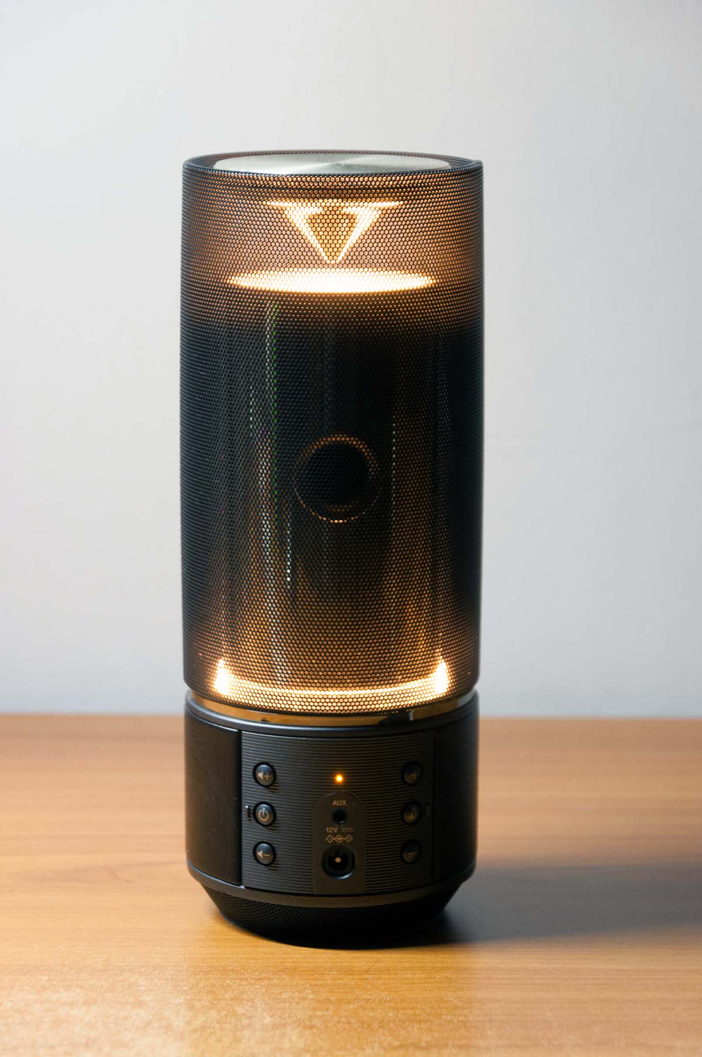 La parte più appariscente del diffusore resta però la lampada interna, che illumina la parte superiore e media del cilindro di una affascinante luce gialla, offrendo una atmosfera piacevole e calda in linea con il design del prodotto, sicuramente più improntato al mondo del Hi-Fi di alto profilo (dove Yamaha si trova a suo agio) che a quello della musica portatile.