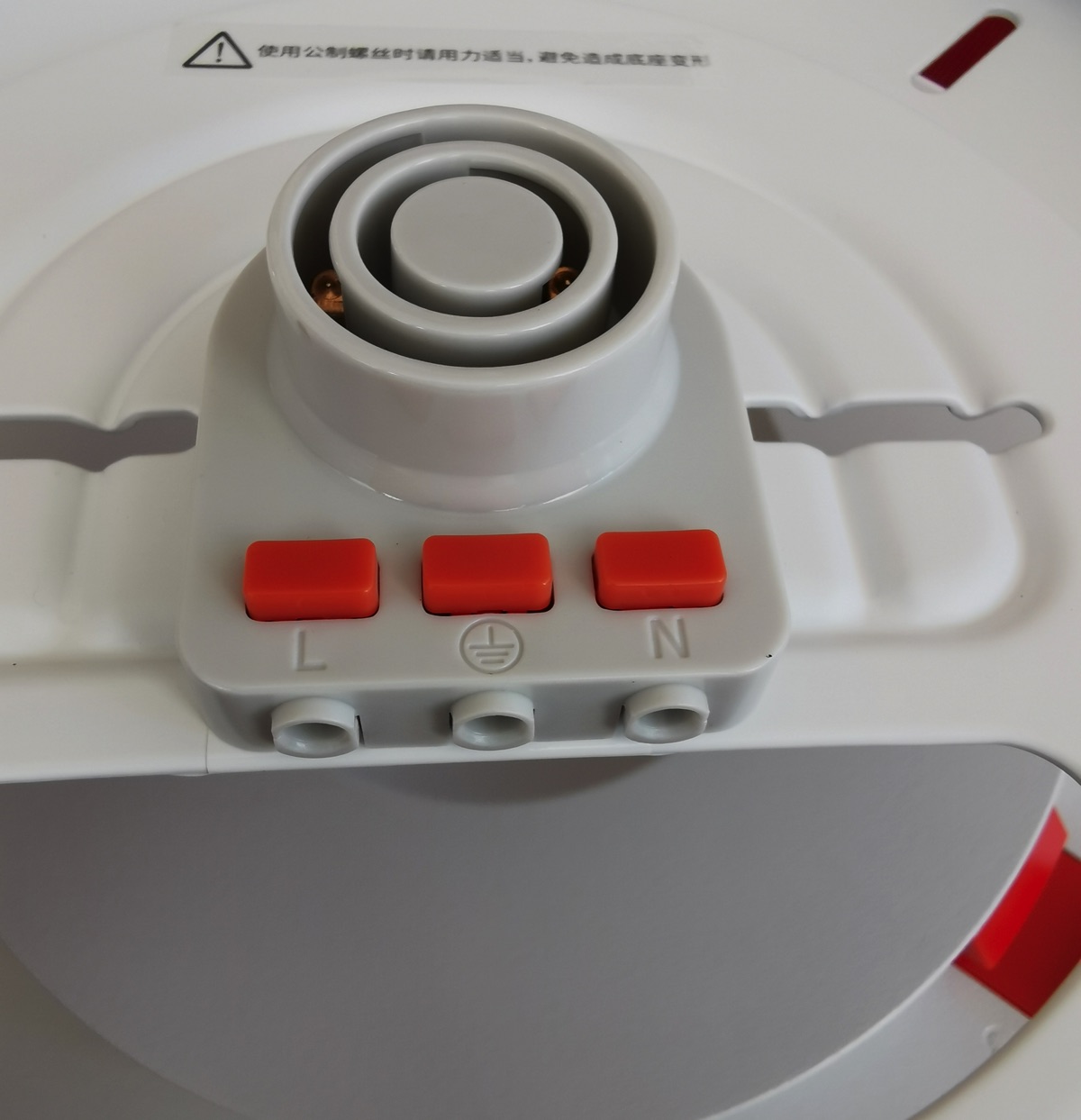 Il collegamento avviene tramite un sistema di contatti attivato dall’inserimento dal blocco illuminante e il blocco base: quest’ultimo ha i fori per il posizionamento preventivo a soffitto e una morsettiera a pulsante per Neutro, Fase e messa a terra e questa è la prima differenza con la serie precedente visto che il terzo connettore non esisteva nei primi modelli.