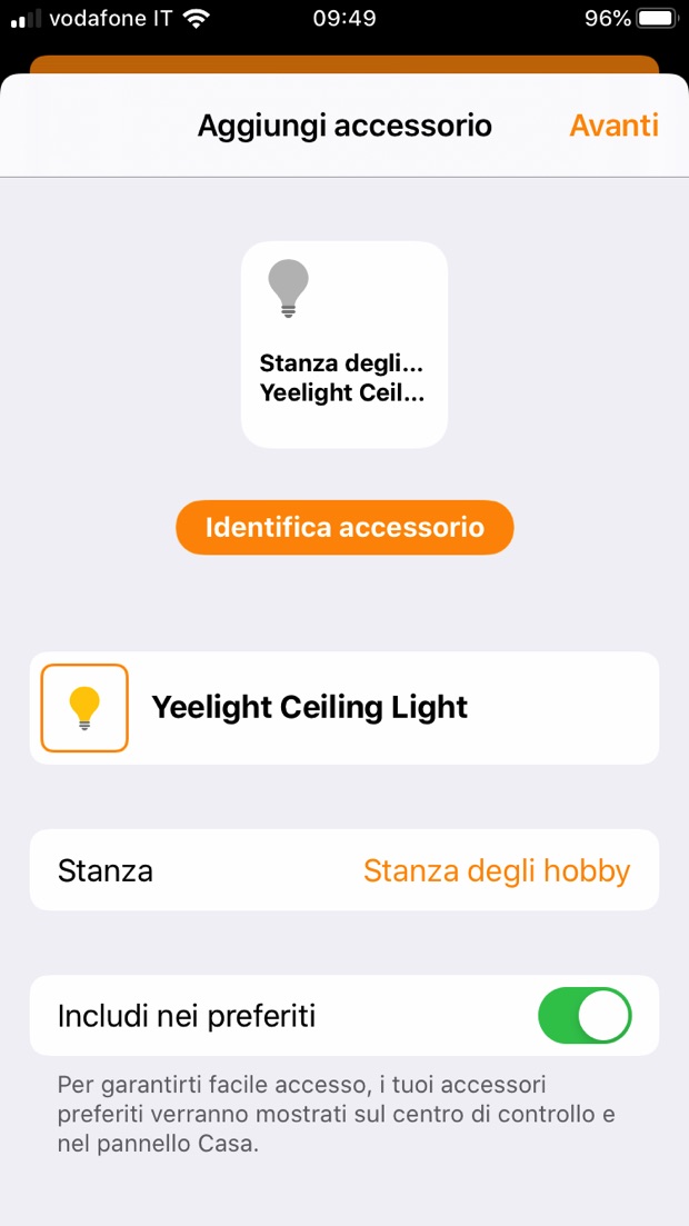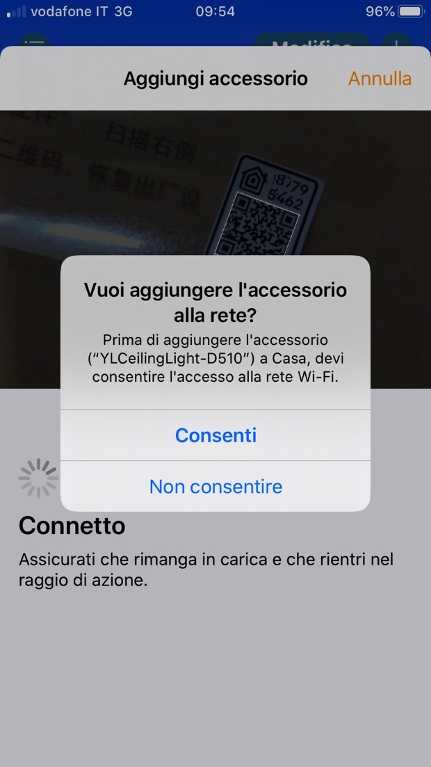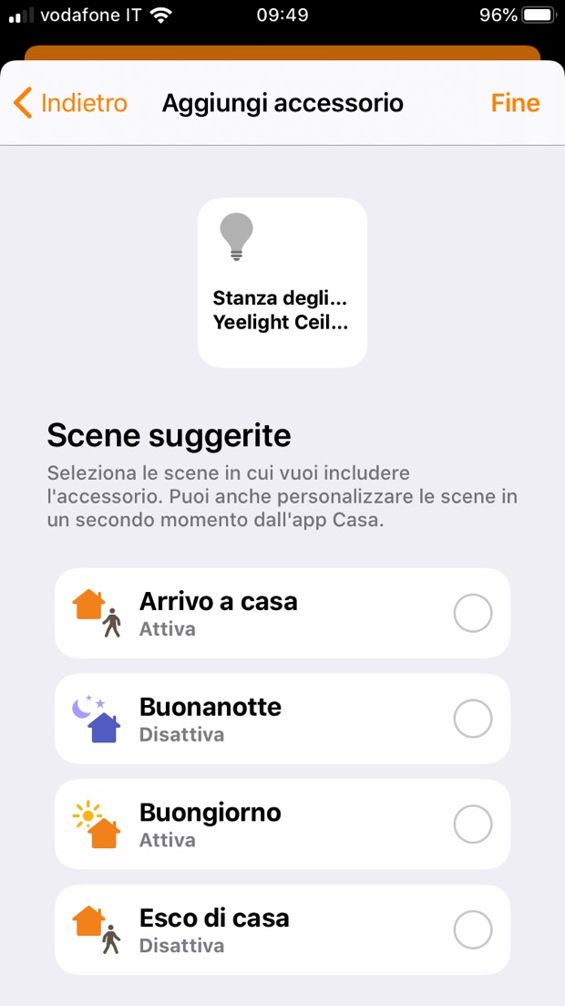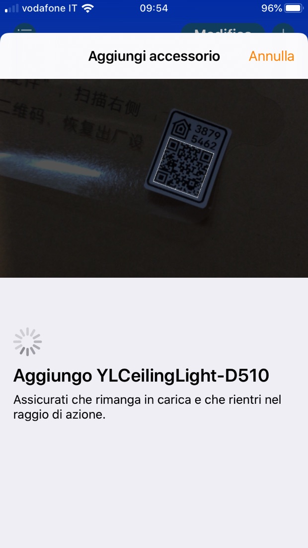 Basta entrare nell’app Casa e premere il tasto [+]: si attiverà la fotocamera e inquadrando il codice… “bam” la lampada viene inclusa senza registrarsi ad un servizio online cinese o tedesco (Yeelight gestisce i clienti europei con un server in Germania) e passa direttamente sotto il vostro controllo suggerendovi anche l’inclusione in una automazione.