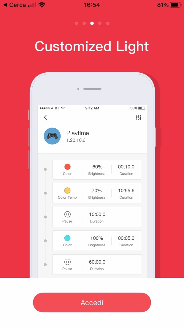 E’ da notare che la luce si riaccende sempre con l’ultimo stato che avevate allo spegnimento anche da interruttore a muro: è sicuramente la modalità che preferiamo per non “flashare” con luci altissime stanze relativamente piccole.