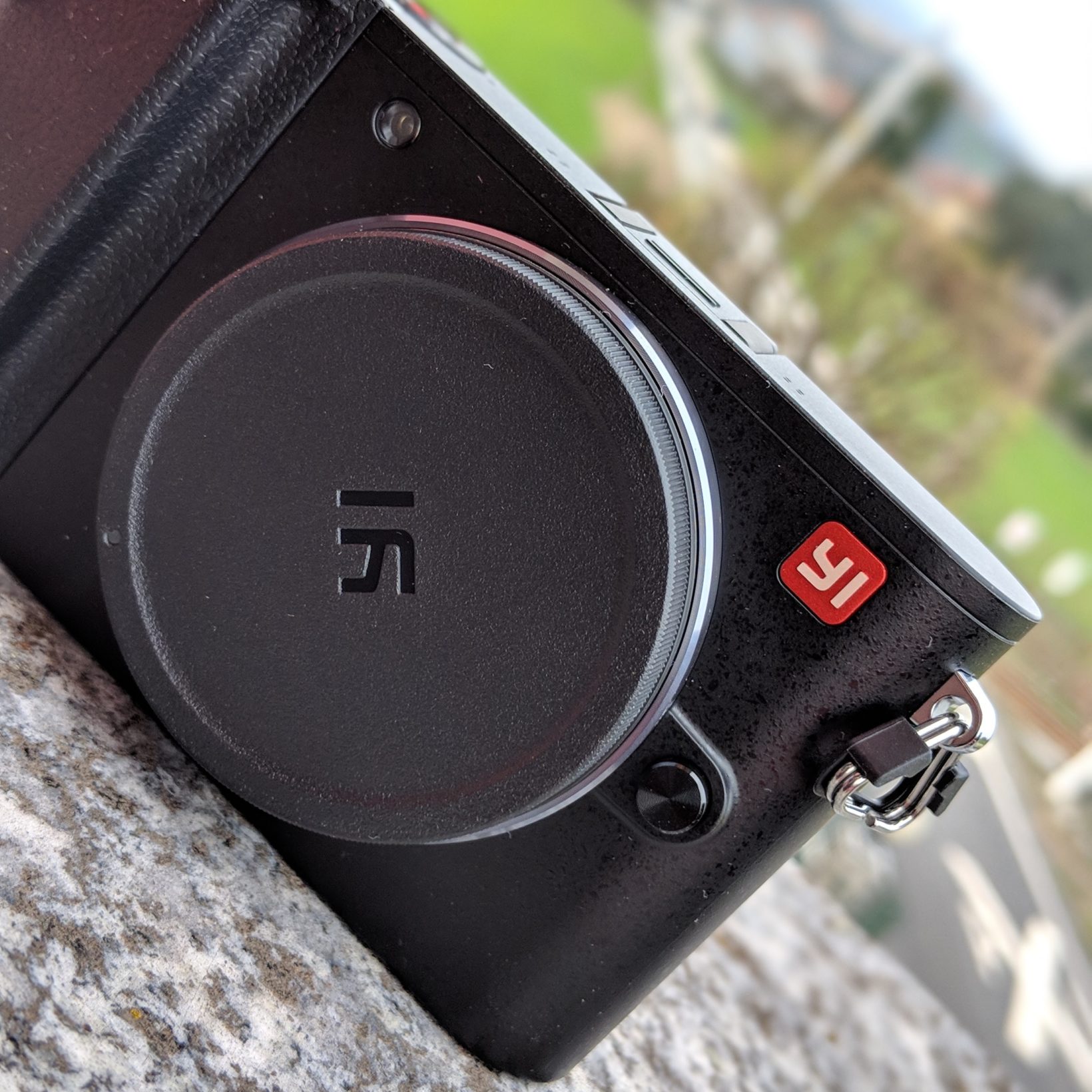 Oltre al bollino rosso del marchio Yi (anche questo evidente omaggio all’iconico pallino rosso di Leica), sul fronte la fotocamera è totalmente priva di pulsanti (a parte il tasto di espulsione delle ottiche) e presenta il classico rigonfiamento dell’impugnatura, realizzato in un materiale plastico e ruvido, per assicurare la presa.