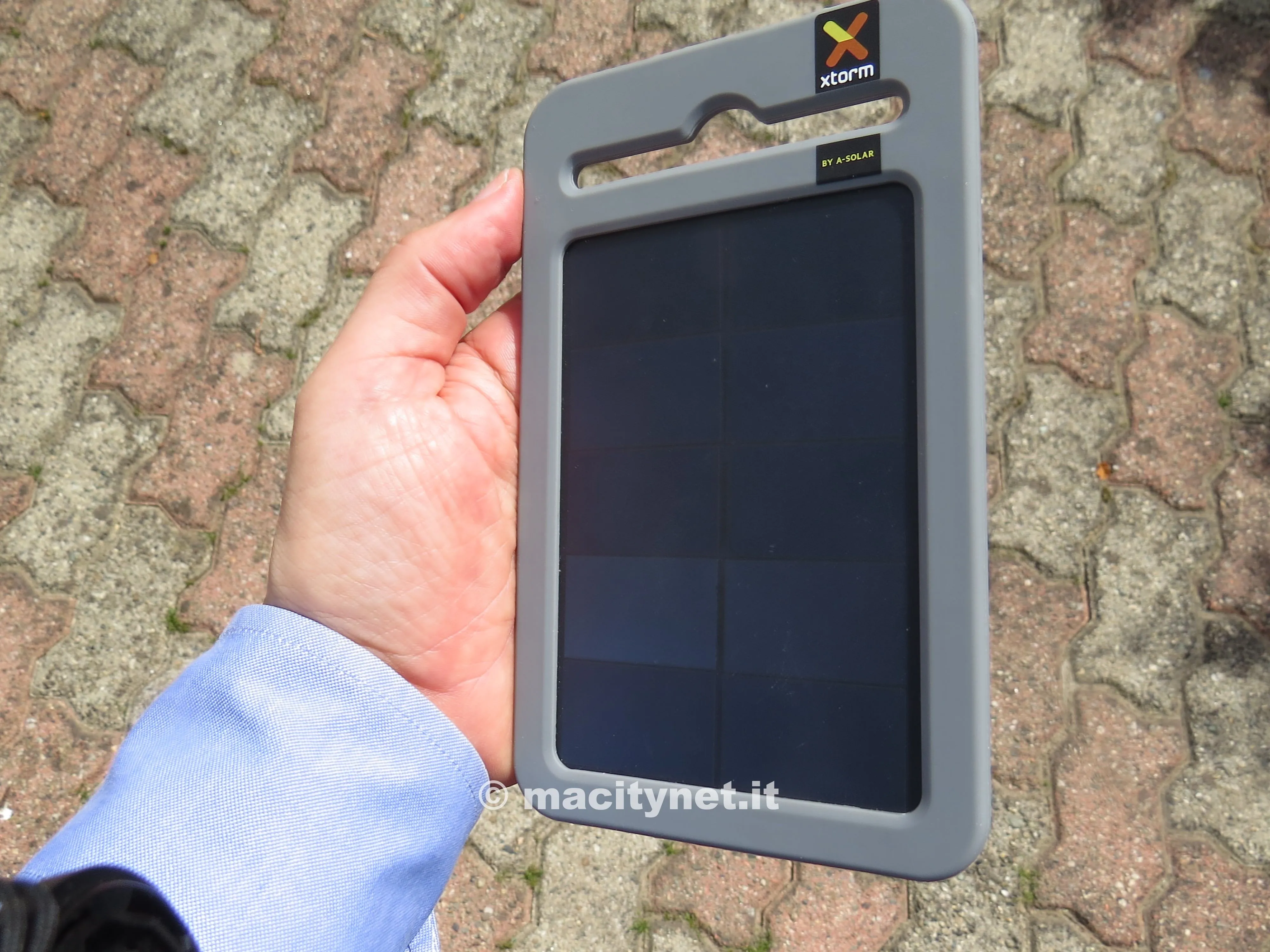Abbiamo provato Yu Charge in tre situazioni tipiche. Prima abbiamo ricaricato la batteria seguendo esattamente le indicazioni di Xstorm, esponendo il pannello alla luce del sole piena con un angolo di 45 gradi. Poi l’abbiamo collocato all’ombra, infine abbiamo provato a ricaricarlo in casa, durante una giornata mediamente luminosa, orientandolo verso una finestra. Nel primo caso abbiamo ricaricato la batteria in circa 7 ore; considerando che il test è stato fatto nel mese di aprile, con un cielo non del tutto terso ed incidenza del sole non allo zenit (il pannello solare della nostra casa produceva energia intorno al 75% del suo massimo picco), il risultato è stato piuttosto buono, un segno che le celle solari, in un assetto non troppo “muscoloso” (l’uscita è di 1,5W) sono di qualità; d’altra parte Xtorm segnala che sono prodotte da SunPower, una delle migliori aziende al mondo nel settore. Il risultato è stato discreto anche collocando lo Yu Charge all’ombra; il tempo richiesto per la ricarica è stato di circa 10 ore. 12 ore invece il tempo necessario per la ricarica in casa, orientando il pannello verso la finestra. In termini pratici possiamo immaginare che appendendo l’accessorio ad uno zaino e passando da zone al sole e all’ombra, da una carrozza di un treno ad un bar, la ricarica completa della batteria potrebbe avvenire in una giornata. In sostanza questo dovrebbe bastare per non restare mai senza batteria di un telefono. Ovviamente otto ore sono un tempo non rapido quanto quello che avremmo ricaricando la batteria con un normale accessorio da parete (nel nostro test abbiamo impiegato circa 3 ore con un alimentatore di iPhone), ma considerando che un cellulare in condizioni d’uso normale dovrebbe durare una giornata, si comprende che il ciclo è coerente: usiamo l’iPhone e nello stesso tempo andremo a ricaricare la batteria di Yu Charge, poi ricaricheremo l’iPhone, magari di notte, e poi saremo pronti a ricaricare la batteria dello Yu Charge, mentre usiamo l’iPhone.