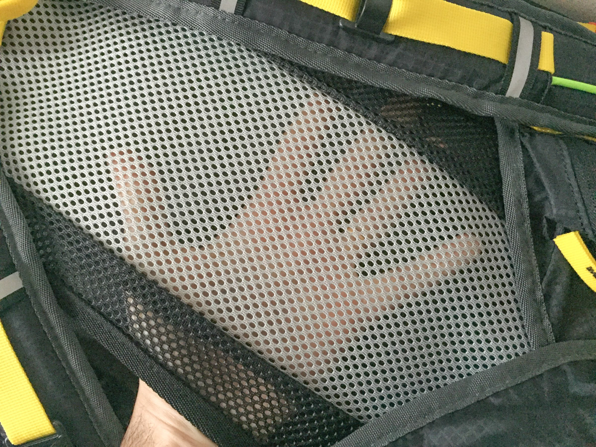 Purtroppo non si può dire invece lo stesso degli spallacci, ugualmente robusti rispetto alla versione più piccola ma meno traspiranti. La copertura è in tessuto ed è molto più invasiva rispetto al 18L, dove trovavamo ampi fori lungo tutto lo spallaccio.