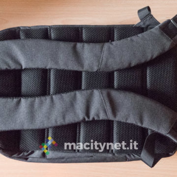 Abbiamo sostituito con soddisfazione il vecchio zaino con questo di Omorc per un’intera settimana nel tragitto casa-lavoro, oltre che per qualche sporadica uscita serale durante la quale avevamo bisogno di avere con noi il computer. A suo favore segnaliamo la presenza di un morbidissimo schienale, imbottito al punto giusto e con una copertura traforata che in estate dovrebbe garantire una buona traspirazione. Se il periodo dell’anno non ci ha permesso di valutare questa caratteristica, possiamo però dire che il confort è assicurato: anche con il MacBook sulla schiena lo zaino non risulta troppo rigido proprio perché ad affiancarlo c’è uno schienale molto morbido e con una buona imbottitura, che ritroviamo seppur in maniera meno consistente sugli spallacci.