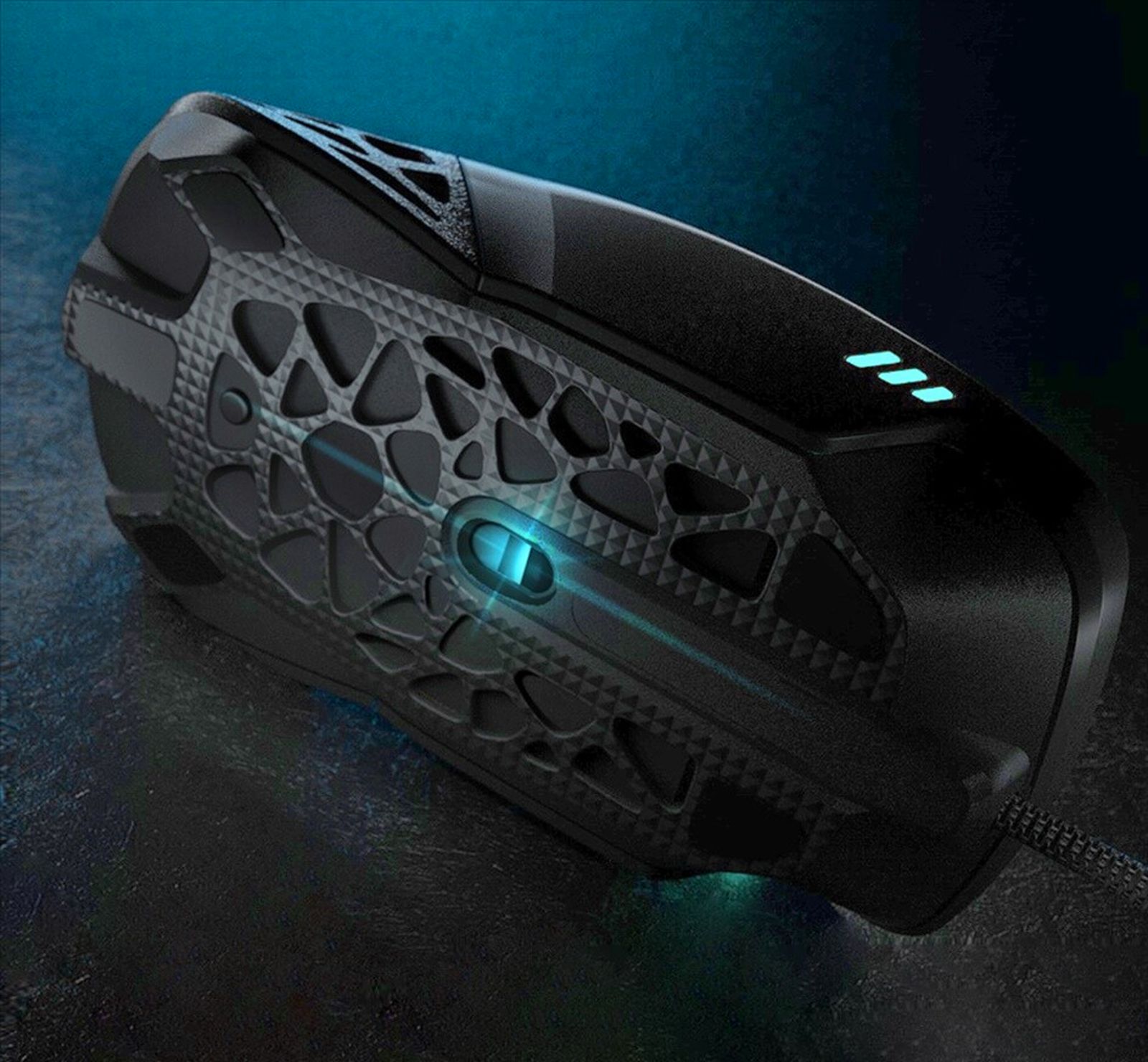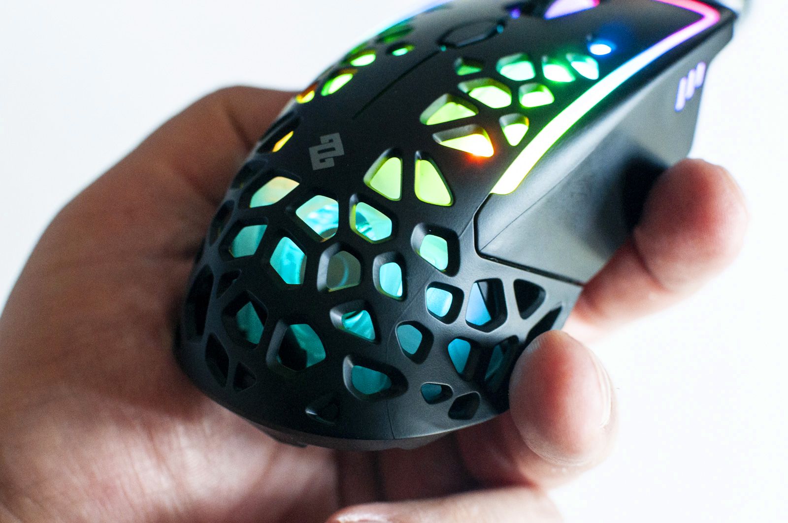 Il mouse mostra una meccanica interna, pullulante di luce, contenuta da una armatura in plastica con una rete molto intrigante, che piacerà ai fan di Starcraft, dato che ricorda molto la forma della razza Zerg all’interno del titolo di Blizzard.