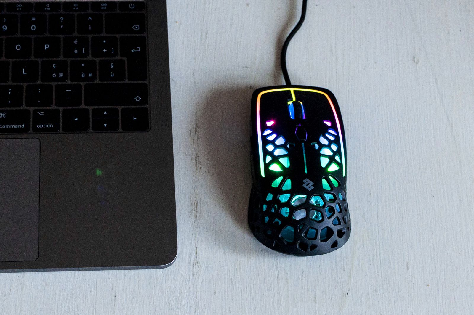 Il design del Zephyr Gaming Mouse è decisamente particolare: se di tanto in tanto vediamo mouse da gamer con design curati che funzionano bene anche in ottica professionale e business (magari per mani che hanno bisogno di precisione), in questo caso non è così.