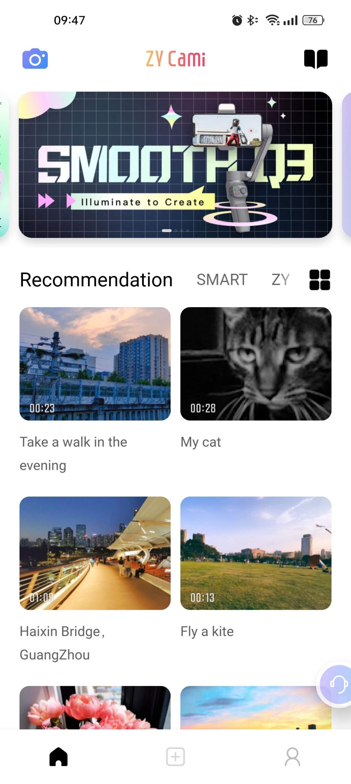 L’applicazione per il corretto funzionamento del gimbal si chiama Zy Cami, disponibile gratis per iPhone e dispositivi Android. In realtà, è possibile utilizzare il gimbal anche con l’app nativa del proprio smartphone, ma in questo caso si perderanno tutti i controlli fisici posizionati sul bastone. L’app consente di registrare video fino alla risoluzione 4K a 30 fps, e include anche altri strumenti interessanti.