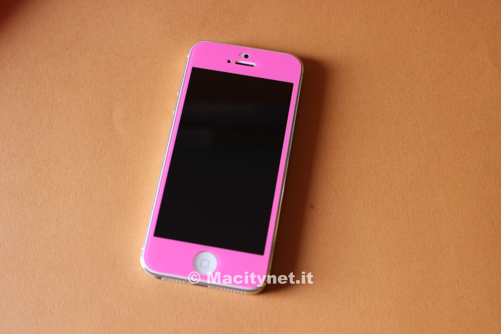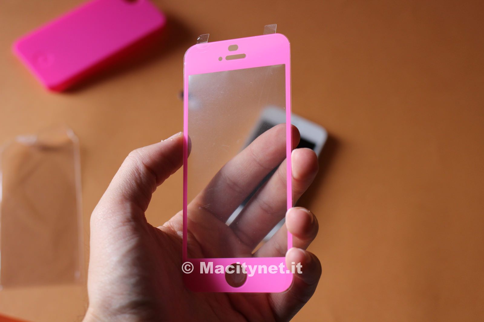 Assenti anche eventuali bolle che solitamente si formano con le classiche pellicole, anche se per un’applicazione ottimale consigliamo sempre di pulire bene il display con una pezza e rimuovere eventuali granelli di polvere che si depositano dopo la pulizia con un pezzo di nastro adesivo. In caso di granelli è comunque possibile staccare facilmente il zNitro Glass, togliere il granello con un pezzo di cartoncino rigido ed applicarlo nuovamente. La particolarità di questo proteggi-schermo sta anche nella colorazione, nel nostro caso rosa, ma disponibile anche in nero, trasparente, bianco, blu, verde, arancione, viola, rosso, azzurro e giallo, che si abbina al colore della custodia rigida inclusa nel kit rinnovando completamente il look del telefono.
