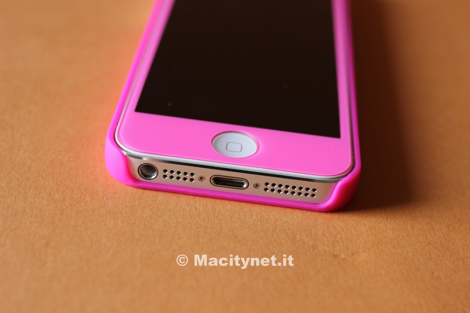 La custodia, in plastica flessibile quel tanto che basta a facilitare l’inserimento dell’iPhone al suo interno, protegge il resto del telefono lasciando le dovute aperture per i tasti Volume e Mute, Fotocamera e Flash, nonché una più ampia zona sul bordo superiore ed inferiore per il completo accesso a speaker, microfoni, ingressi Jack e Lightning. La ciliegina sulla torta la fanno i due bottoni adesivi per il tasto Home che ne facilitano la pressione in quanto, seppur inferiore al millimetro, lo spessore frontale aumenta e senza di questi il click risulterebbe più difficoltoso (ma non impossibile).