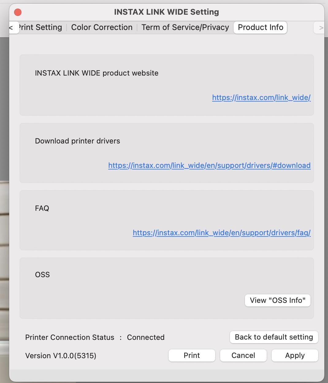 Compatibilità: iOS e Android (app instax Link WIDE). Driver di stampa per Mac e PC, stampa diretta da fotocamere Fujifilm recenti.
