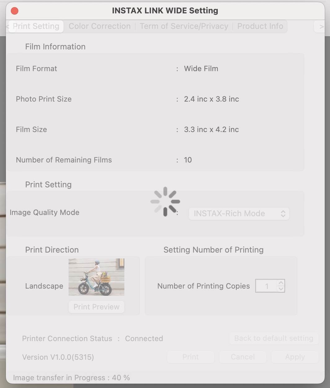 Una volta scelta la foto sull’app il tempo necessario si divide in tre parti: trasmissione, stampa e “sviluppo”.
